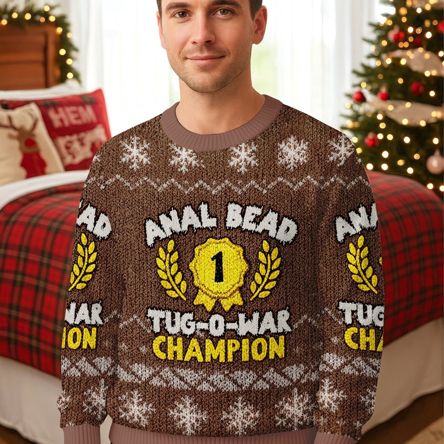 Bead Tug O War Champion Brown Ugly Sweater, Funny Ugly Christmas Sweater, Christmas Ugly Sweatshirt