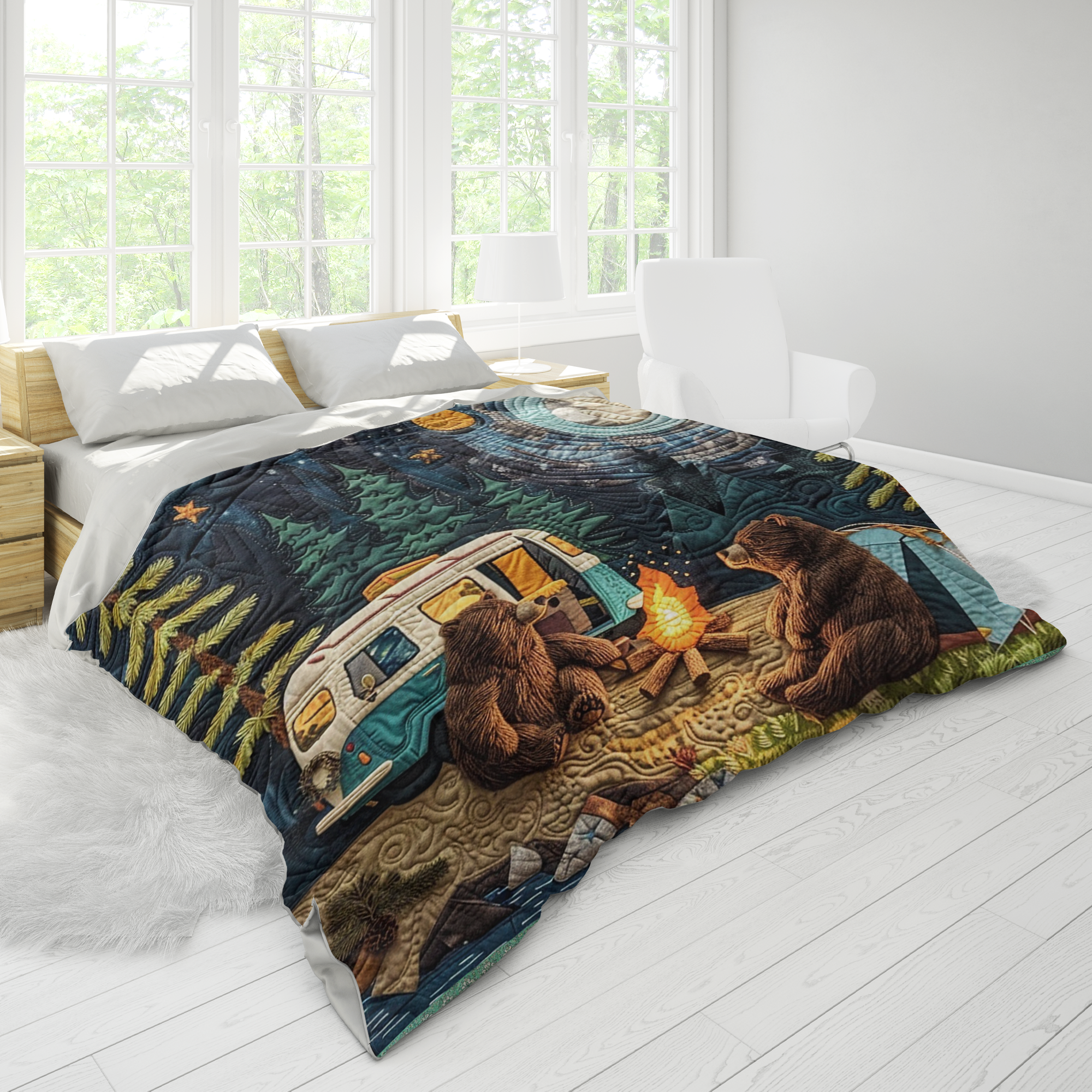 Embark on cozy adventures with our Bear Family Camping Blanket, a must-have for outdoor enthusiasts and nature-loving families. Featuring an adorable bear family design set against a scenic backdrop, this blanket captures the spirit of the great outdoors and adds a touch of wilderness charm to your camping gear.