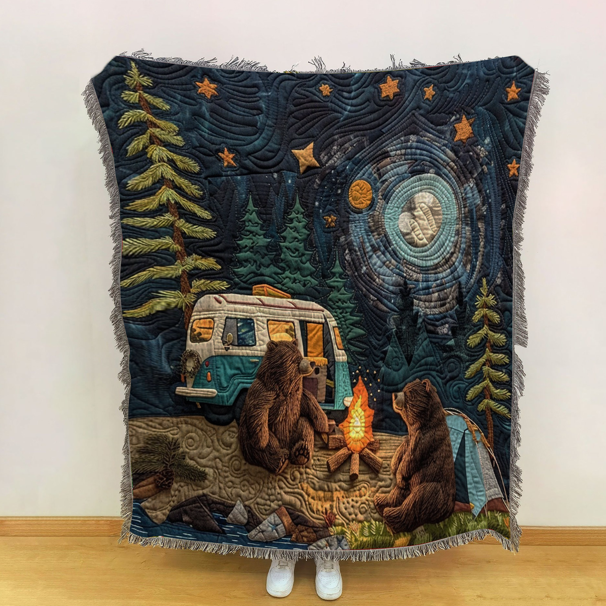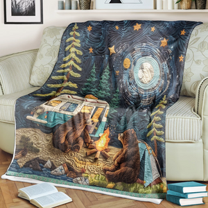 Bear Family Camping Blanket, Gift For Travelers, Bedroom Decor