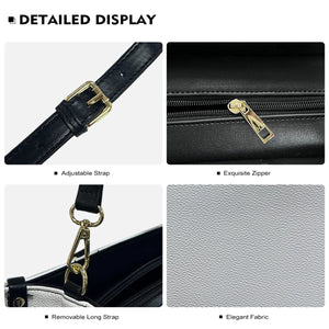 The bag features two handles, a detachable shoulder strap, and a zippered closure. It can be worn as a handbag, shoulder bag, or crossbody bag.
