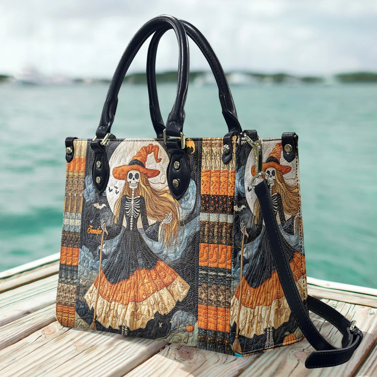 Beautiful Skull Witch - Personalized Witch Leather Handbag - Boho Handbag - Leather Shoulder Bag