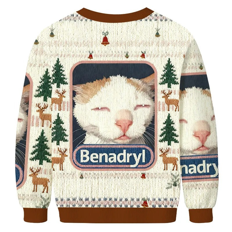 Benadryl Cat Ugly Sweater, Gift Ideas For Cat Lovers, Christmas Ugly Sweatshirt