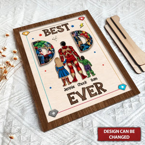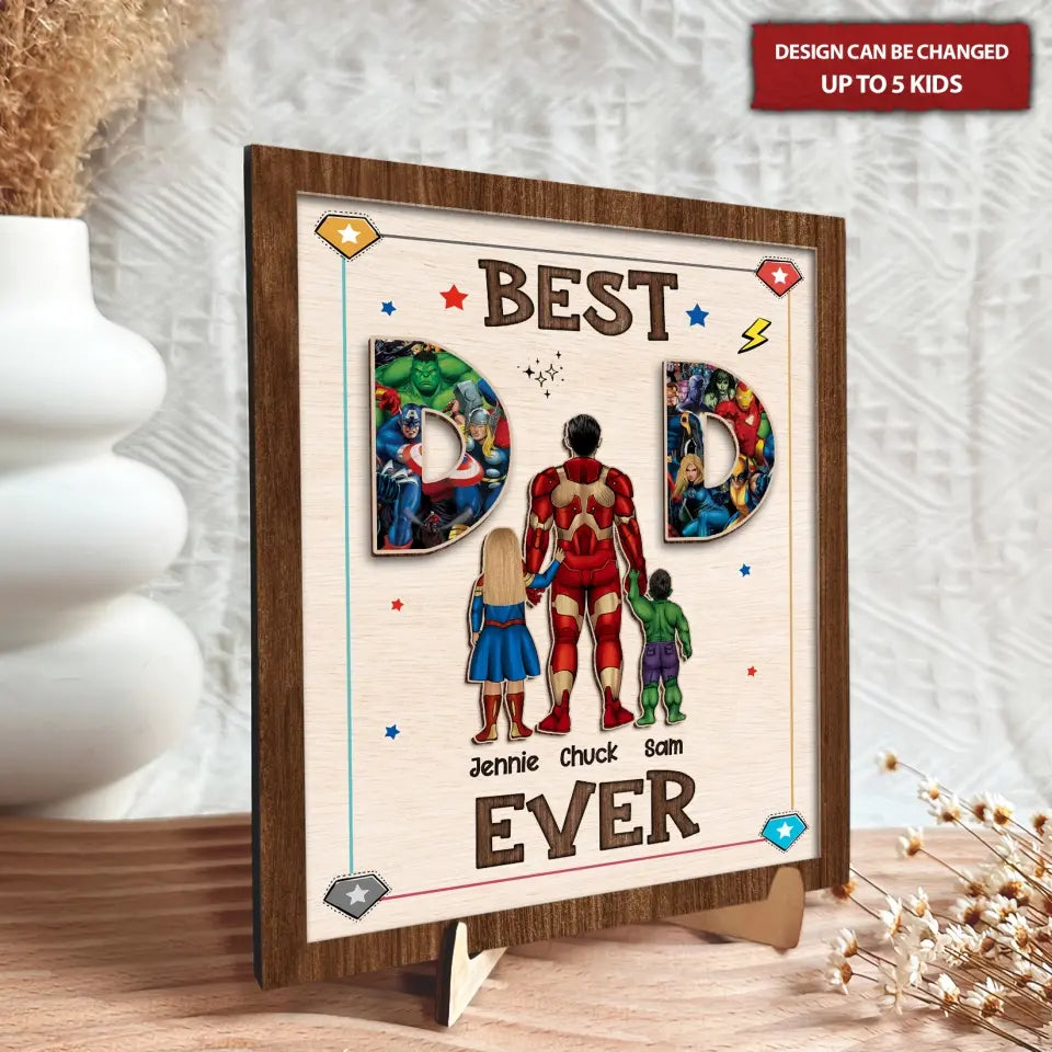 Best Dad Ever Personalized Dad Wood Sign, Custom Dad 2 Layered Sign With Kid Names, Gifts For Dad, Father's Day Gift
