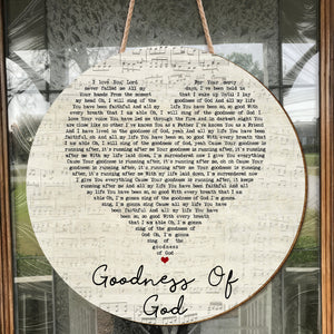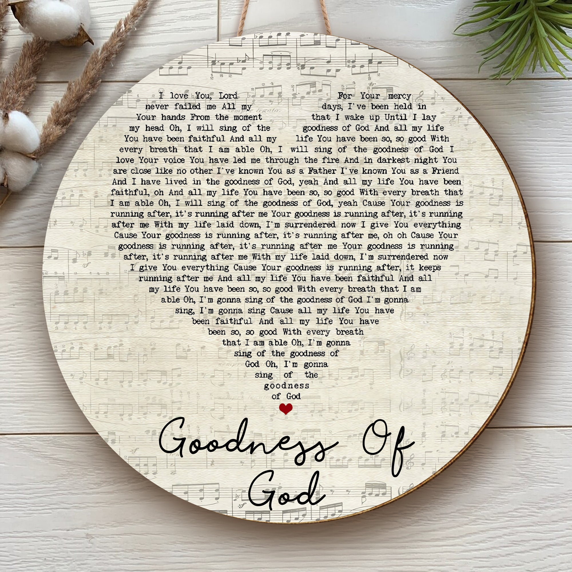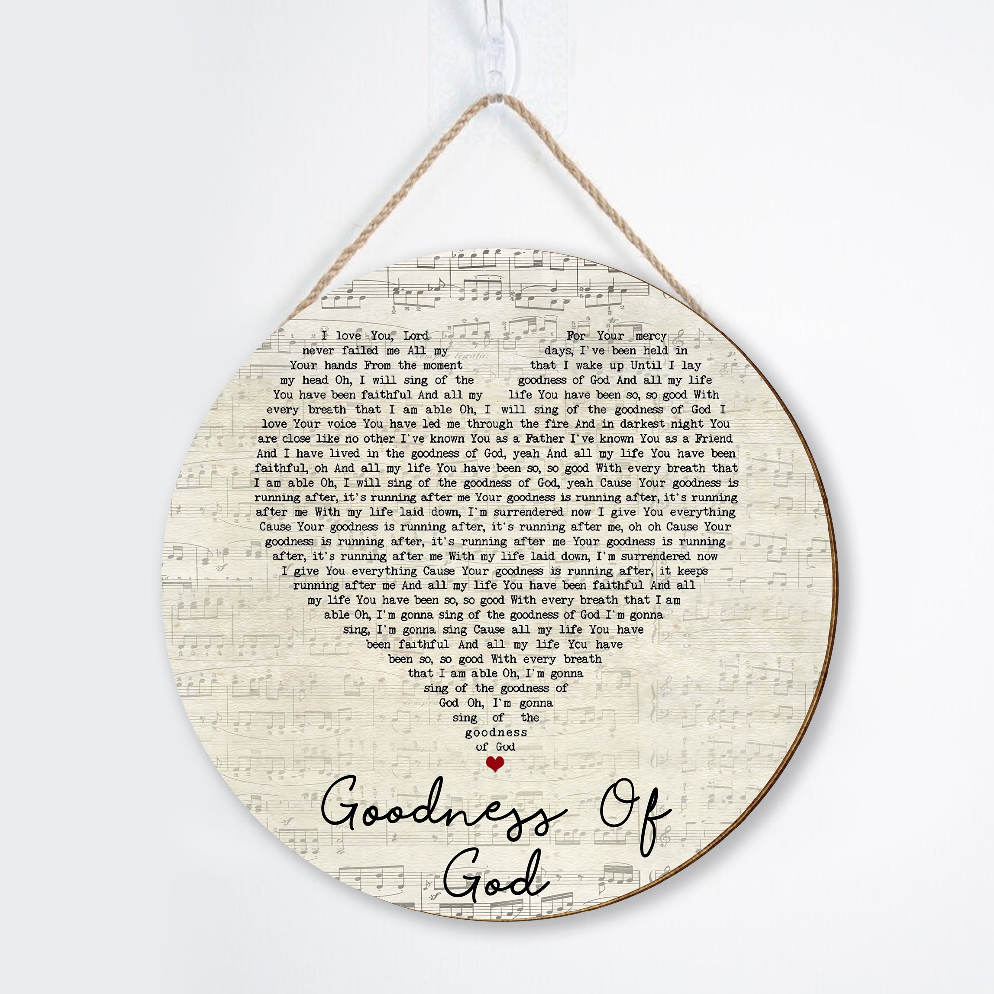 Bethel Music Goodness Of God Script Heart Song Lyric Print Round Wood Sign, Wood Signs For Home