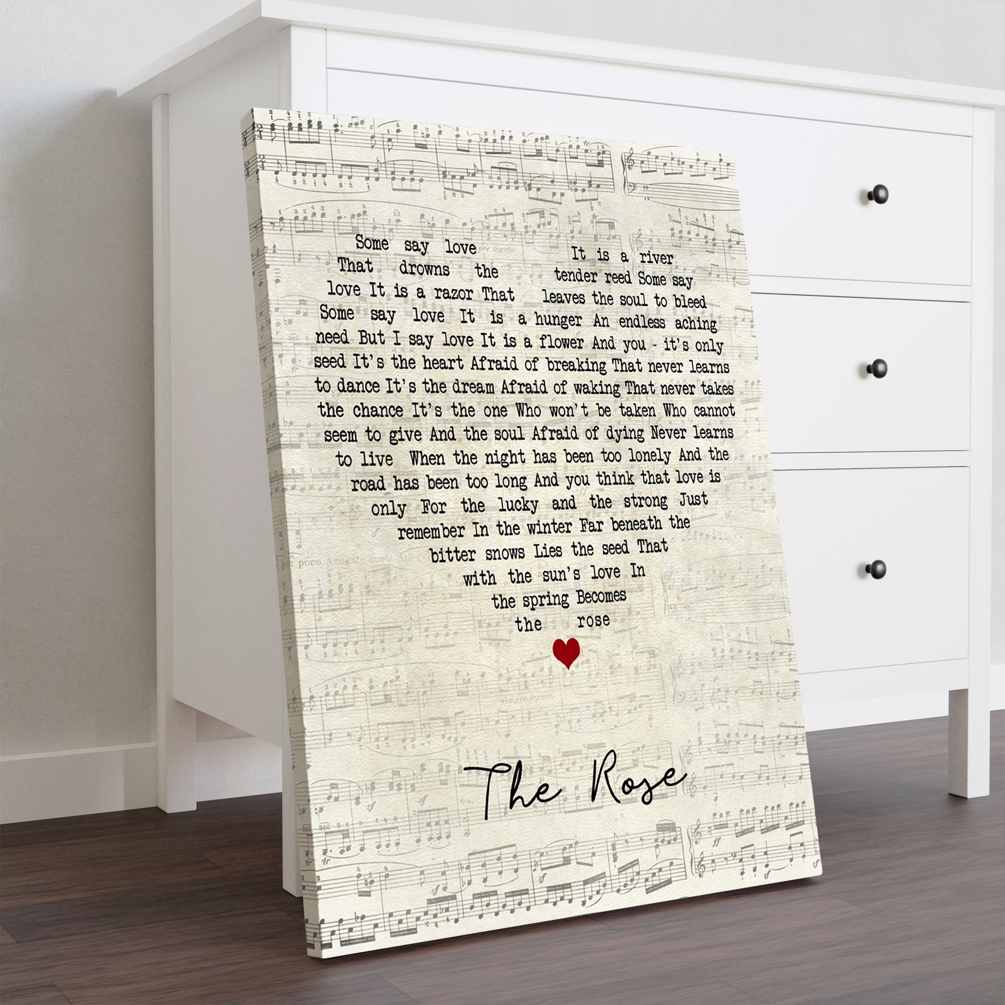 Bette Midler The Rose Script Heart Song Lyric Music Art Print Canvas Print Frames