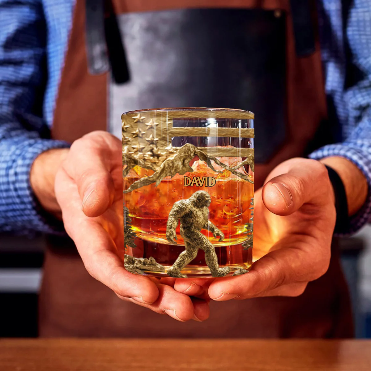 Bigfoot American Flag Patriotic Glass, Custom Whiskey Glass, Personalized Whiskey Glasses