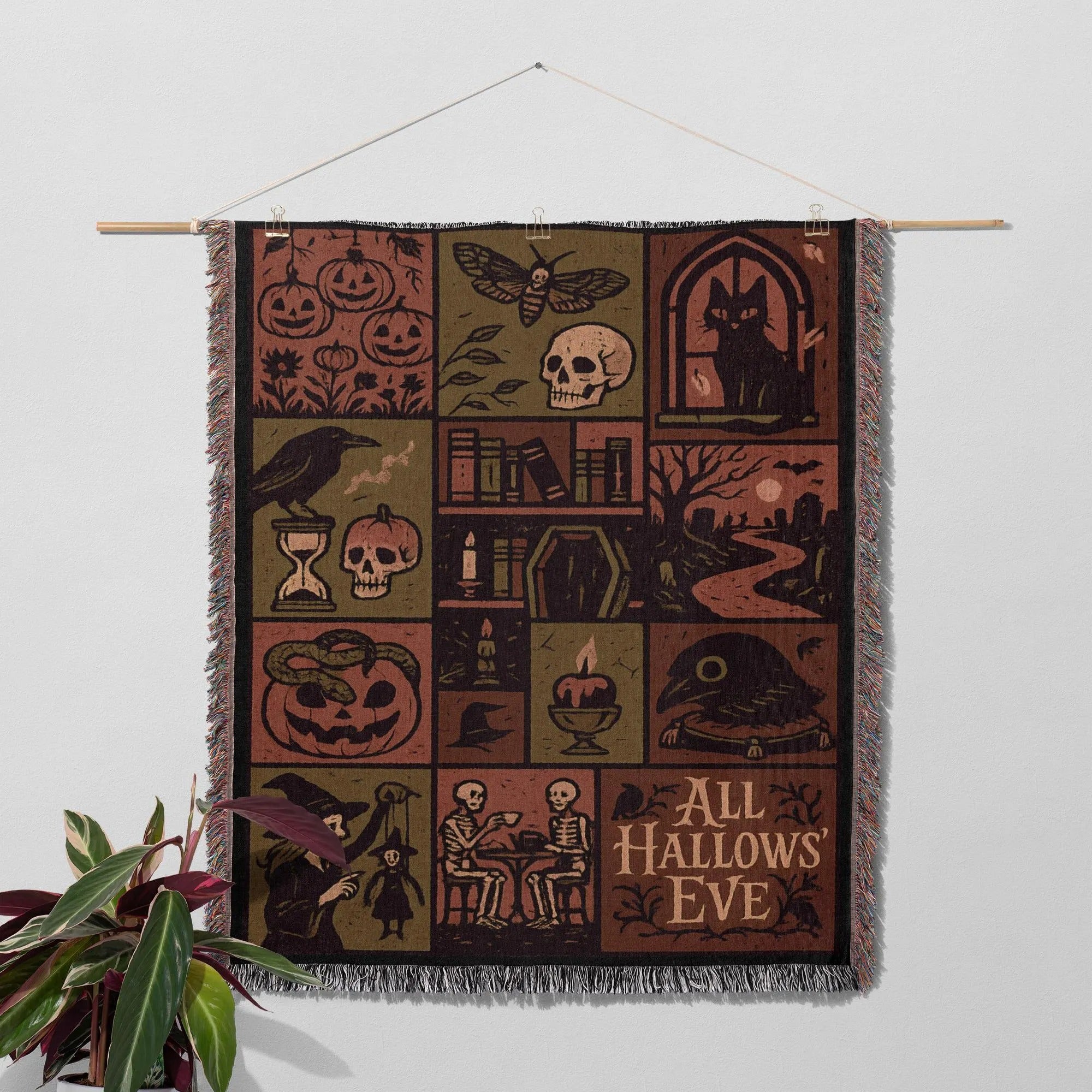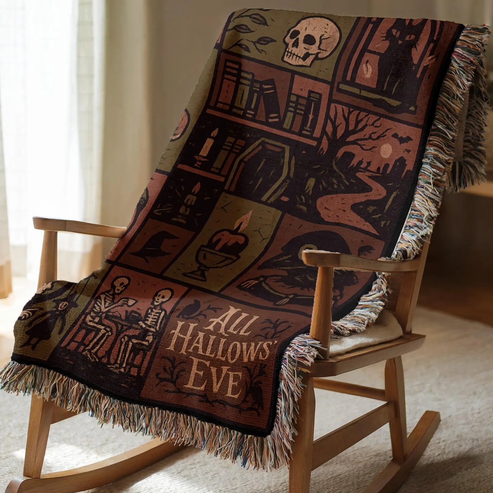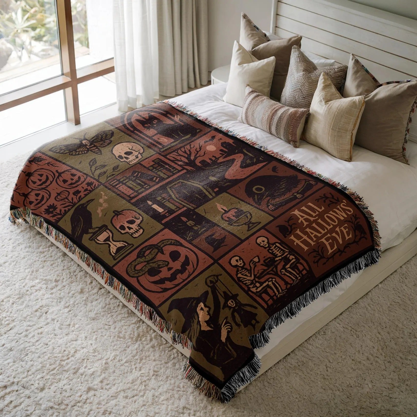 Black Cat Pumpkin All Hallows Eve Throw Blanket, Trick Or Treat Halloween Throw Blanket, Halloween Decor