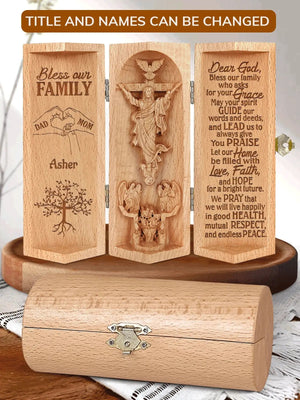 Bless Our Family Personalized Openable Wooden Cylinder Sculpture of Jesus Christ, Christ Decor