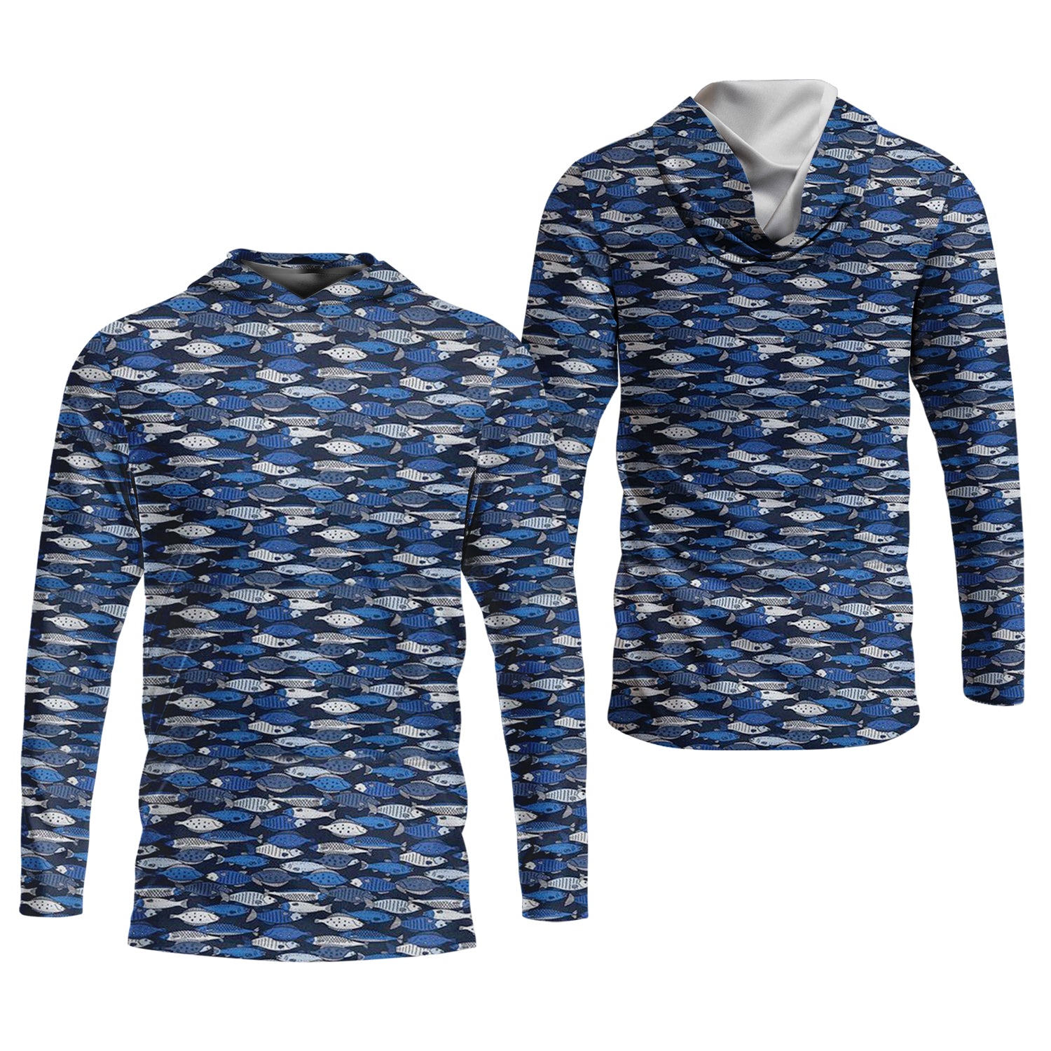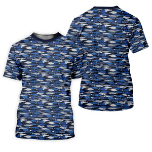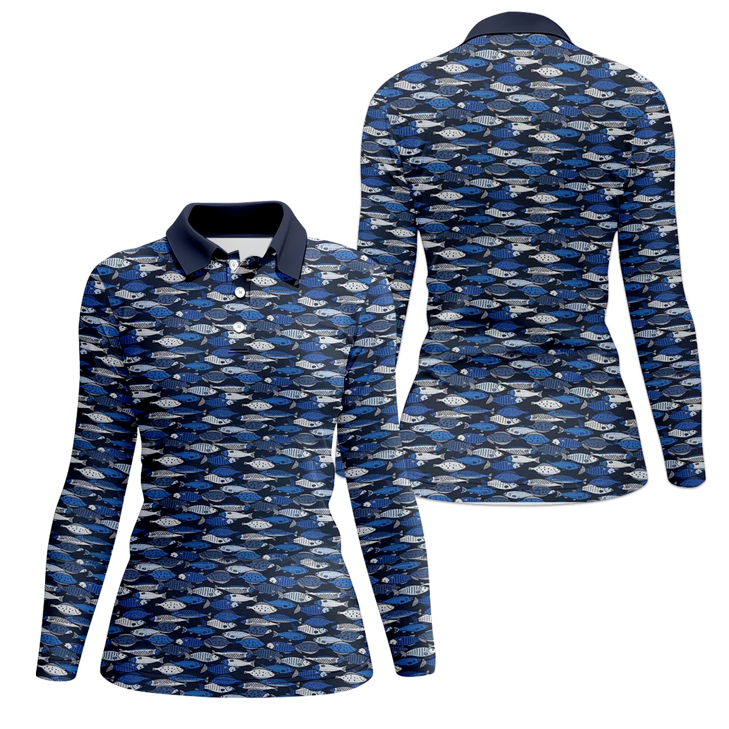 Blue Fish Pattern Performance Fishing Shirts, Fishing Shirt For Women, SPF Long Sleeve Shirts Womens