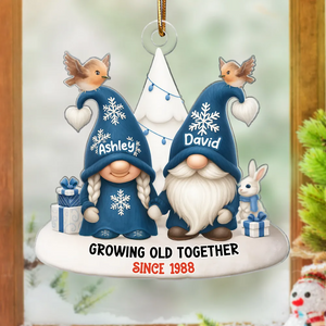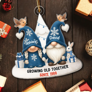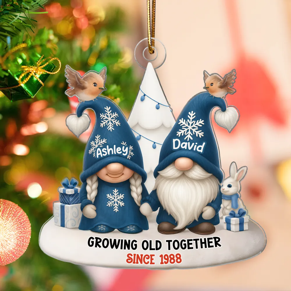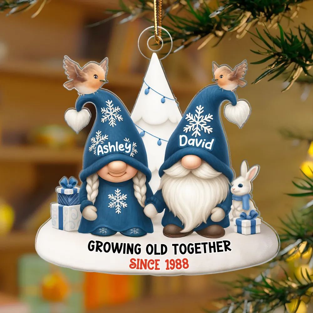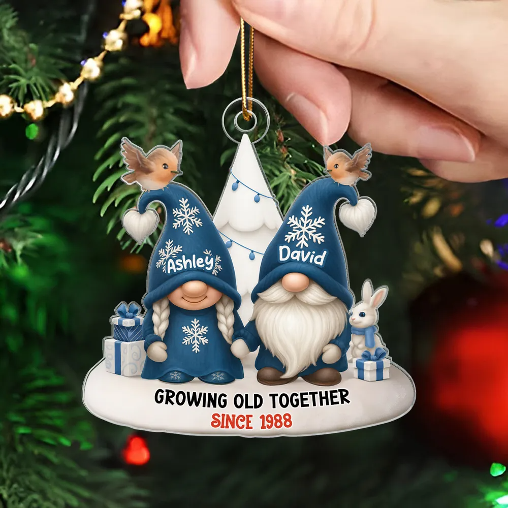 Blue Gnome Christmas Couple Growing Old Together Personalized Acrylic Ornament