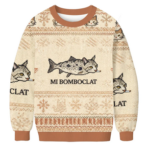 Bomboclat Fish Cat Meme Ugly Sweater, Funny Ugly Christmas Sweater, Christmas Ugly Sweatshirt, Cat Lover Gift