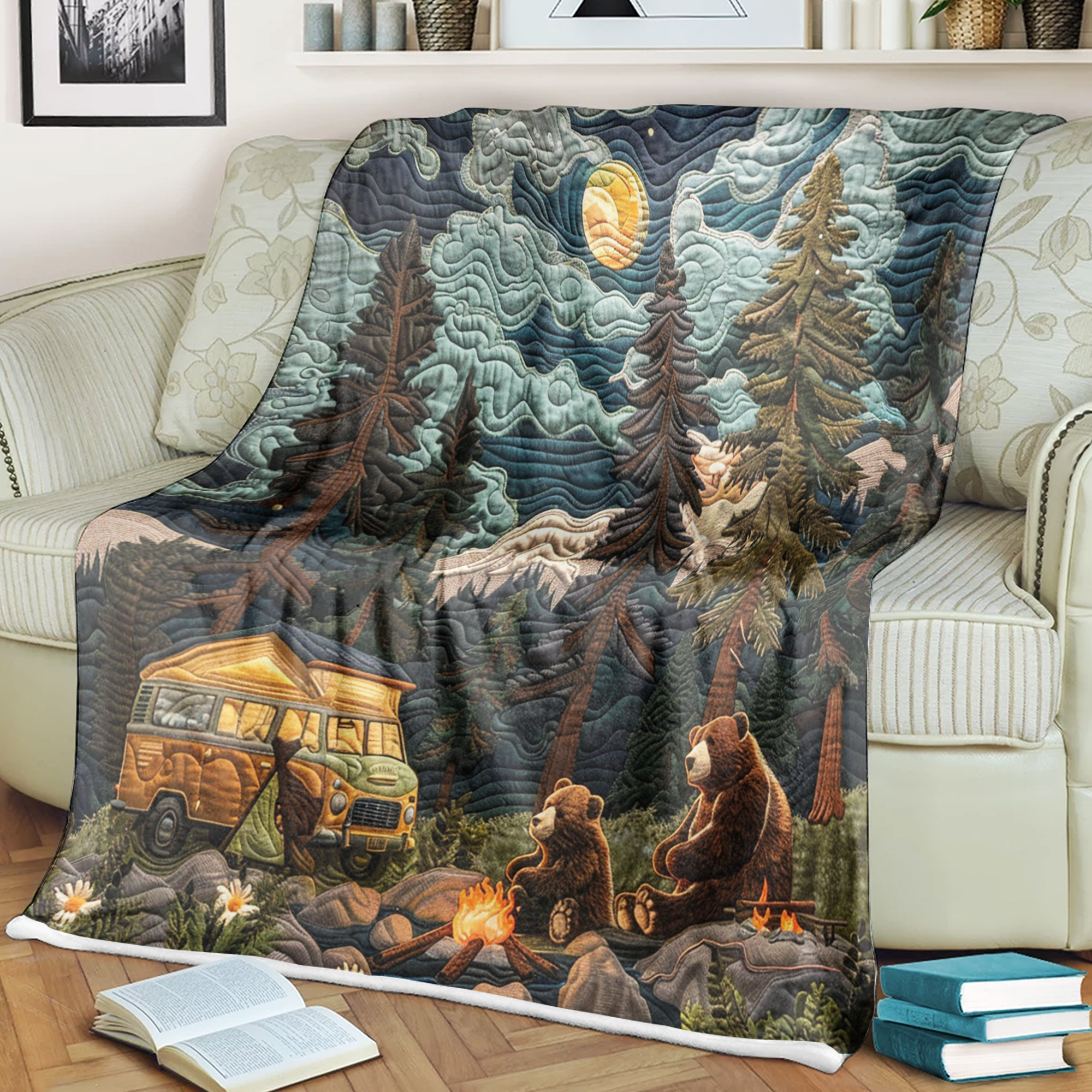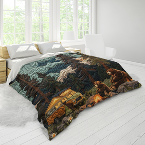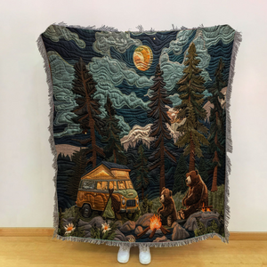 Embark on cozy adventures with our Camping Blanket, a must-have for outdoor enthusiasts and nature-loving families. Featuring an adorable Bonding Bear design set against a scenic backdrop, this blanket captures the spirit of the great outdoors and adds a touch of wilderness charm to your camping gear.