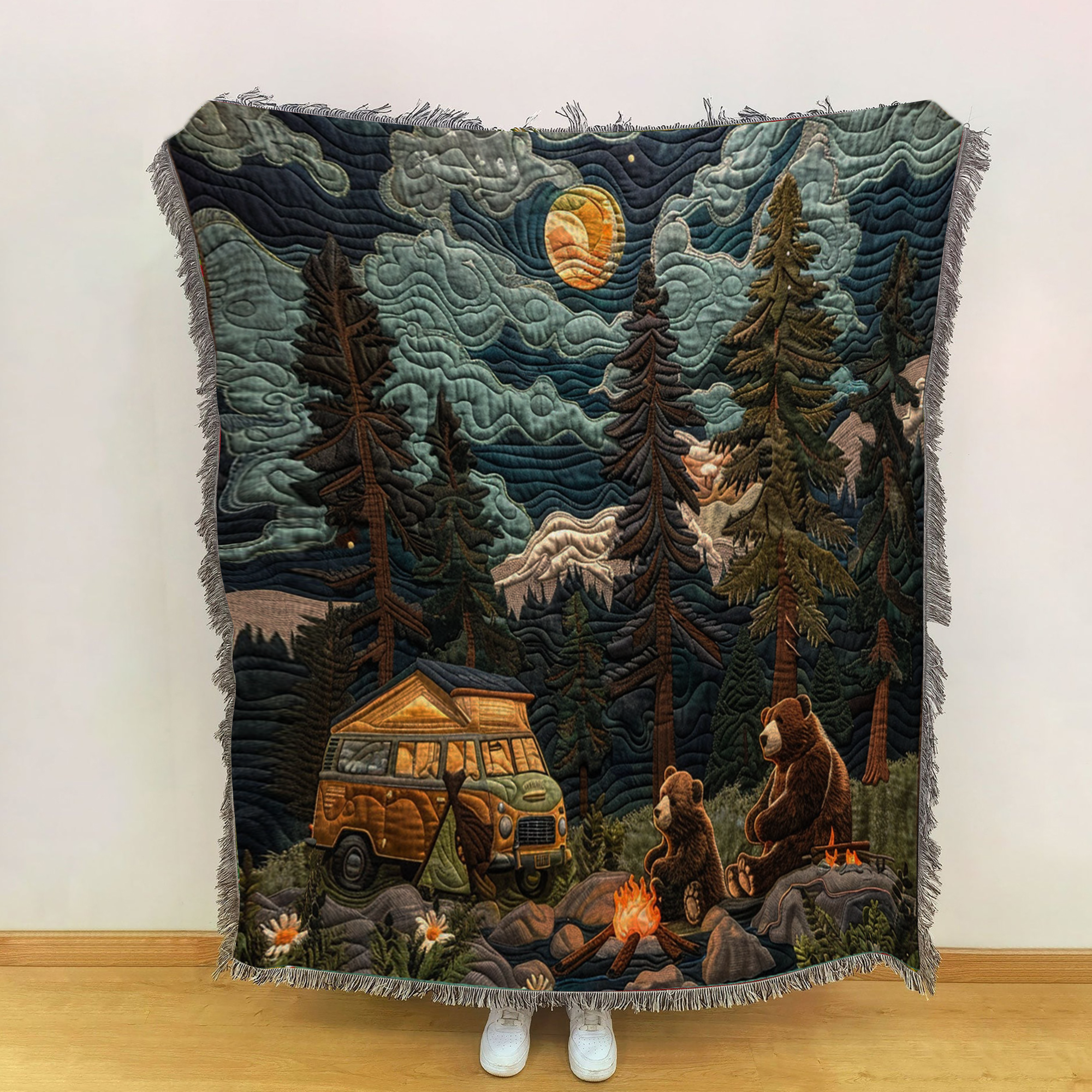 Whether you’re planning a family camping adventure, a picnic in the woods, or simply want to enjoy a piece of the wilderness at home, this camping blanket is designed to bring joy and comfort to every outdoor experience.