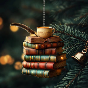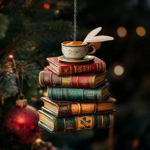 Bookshelf Christmas Ornament Acrylic Ornament, Book Lover Ornament, Christmas Book Ornament