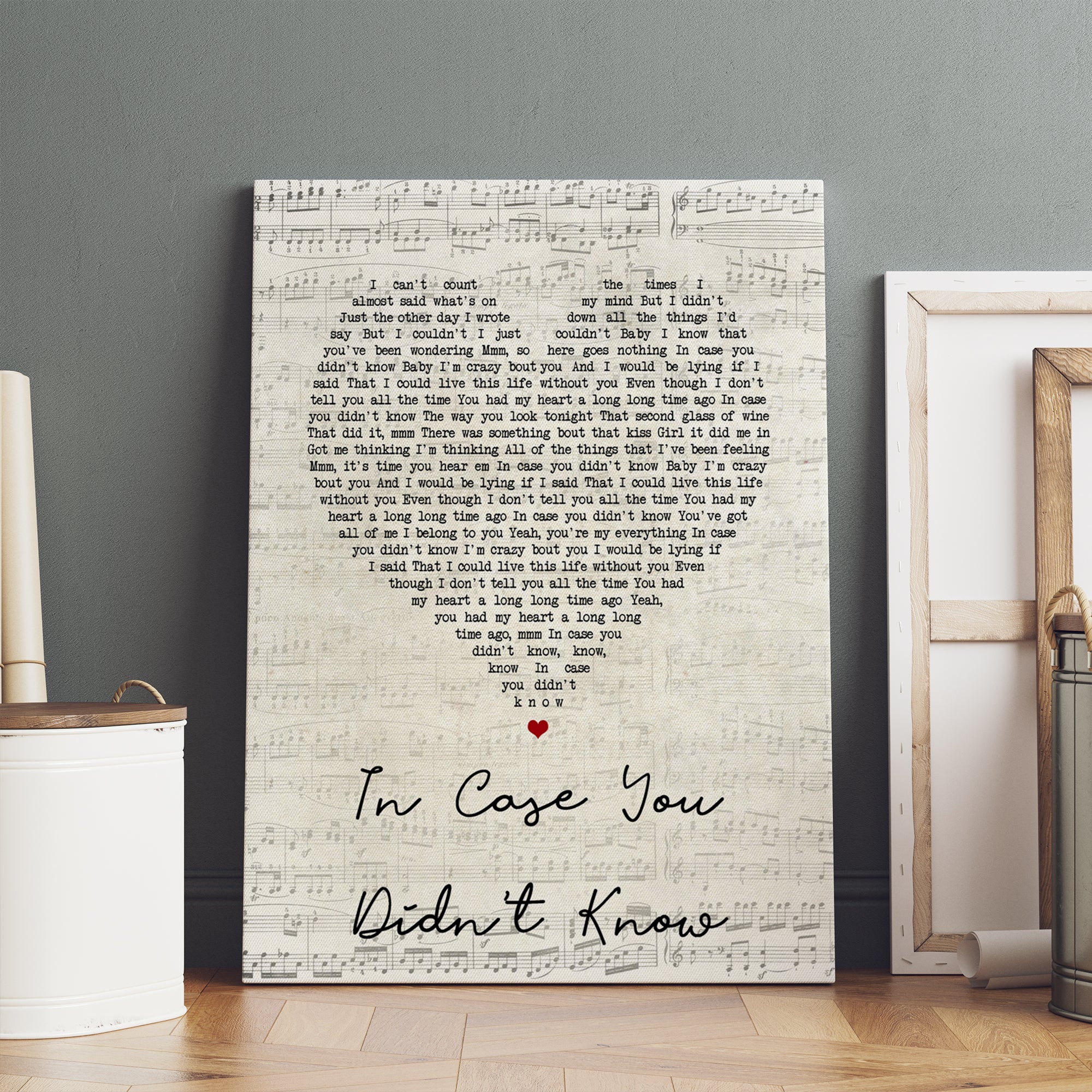 Brett Young In Case You Didn't Know Script Heart Song Lyric Art Print Canvas Print Frames
