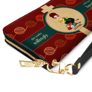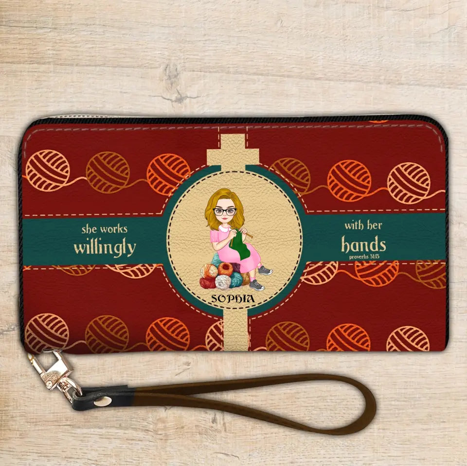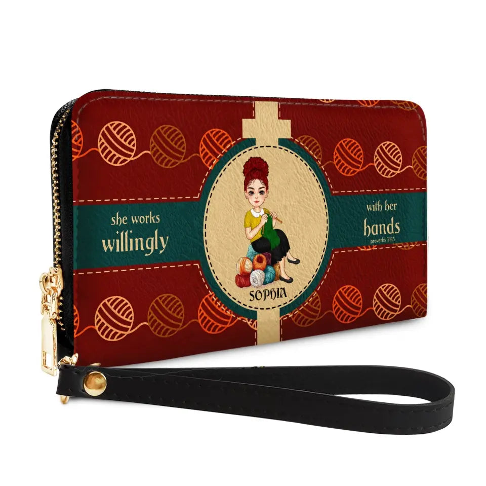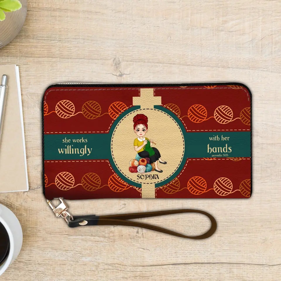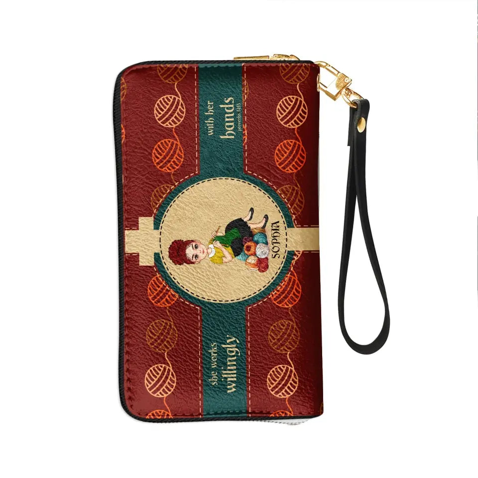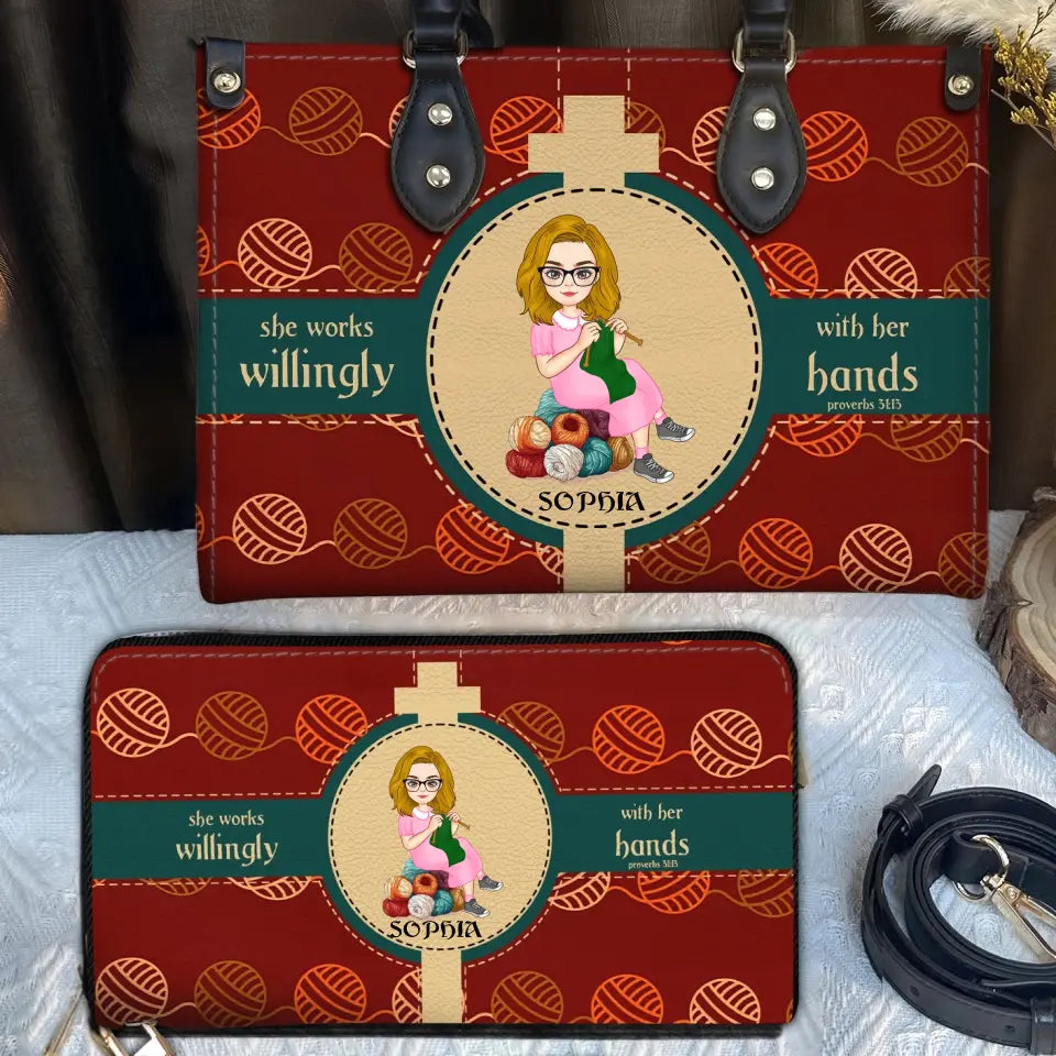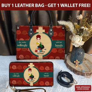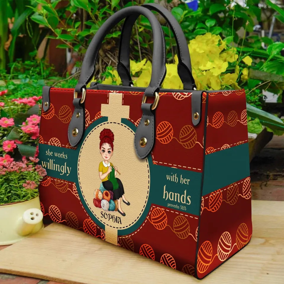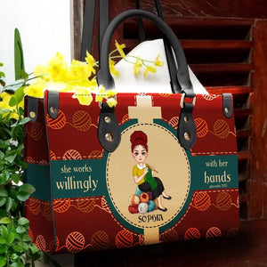 Personalized Knitting Leather HandBag, Gift For Knitting Crochet Lovers