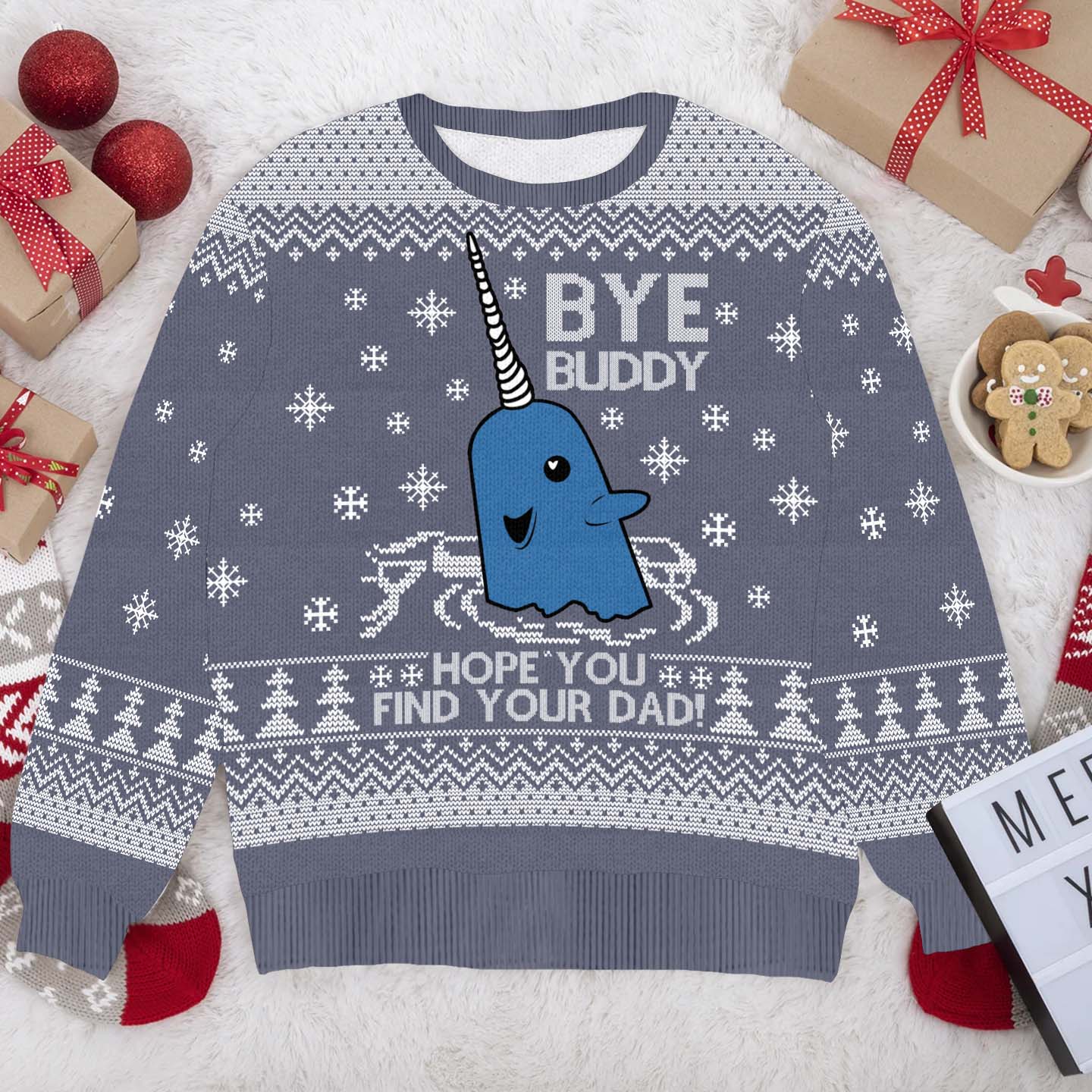 Bye Buddy Hope You Find Your Dad Narwhal Funny Christmas Ugly Sweater, Christmas Gifts