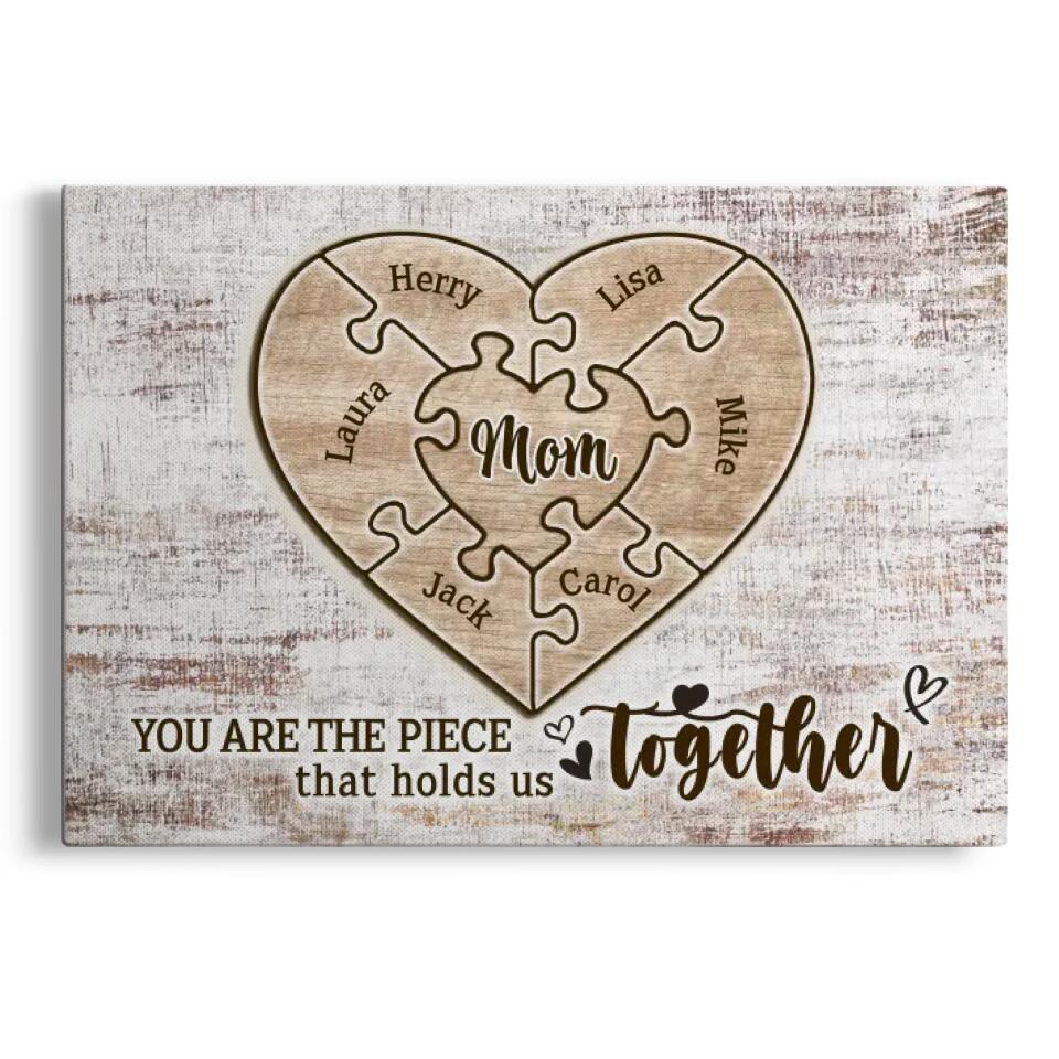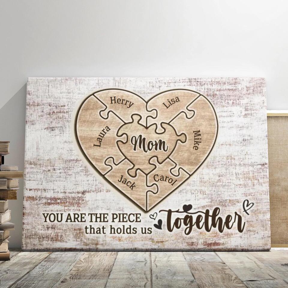 You Are The Piece That Hold Us Together Mom Personalized Family Canvas