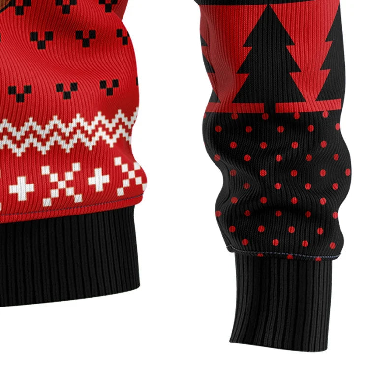 The design features playful graphics and holiday motifs, making it an eye-catching choice for any festive occasion. Imagine wearing it to holiday parties, family gatherings, or even while enjoying cozy nights at home. With its vibrant colors and fun theme, this sweater is sure to be a hit, sparking smiles and conversations wherever you go.