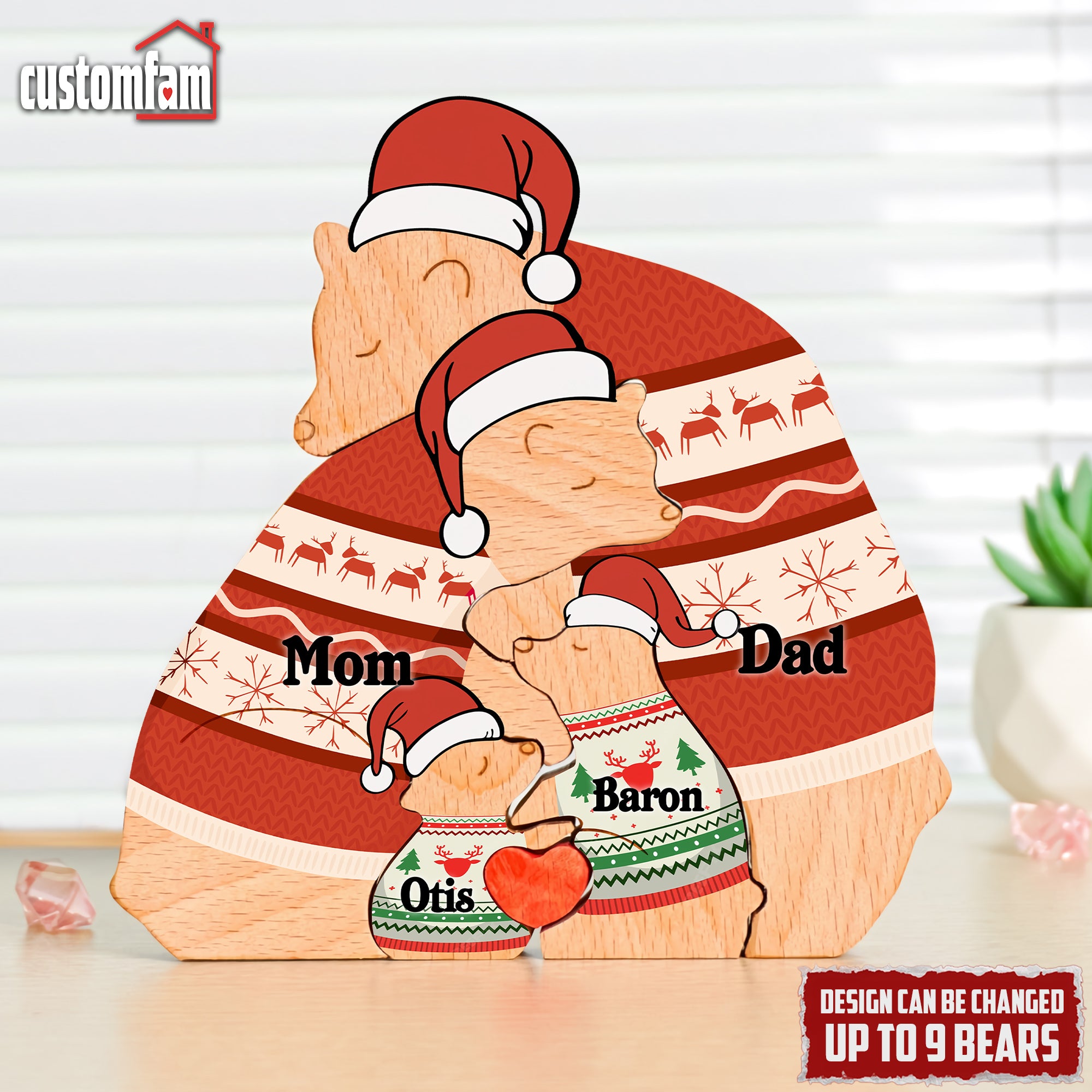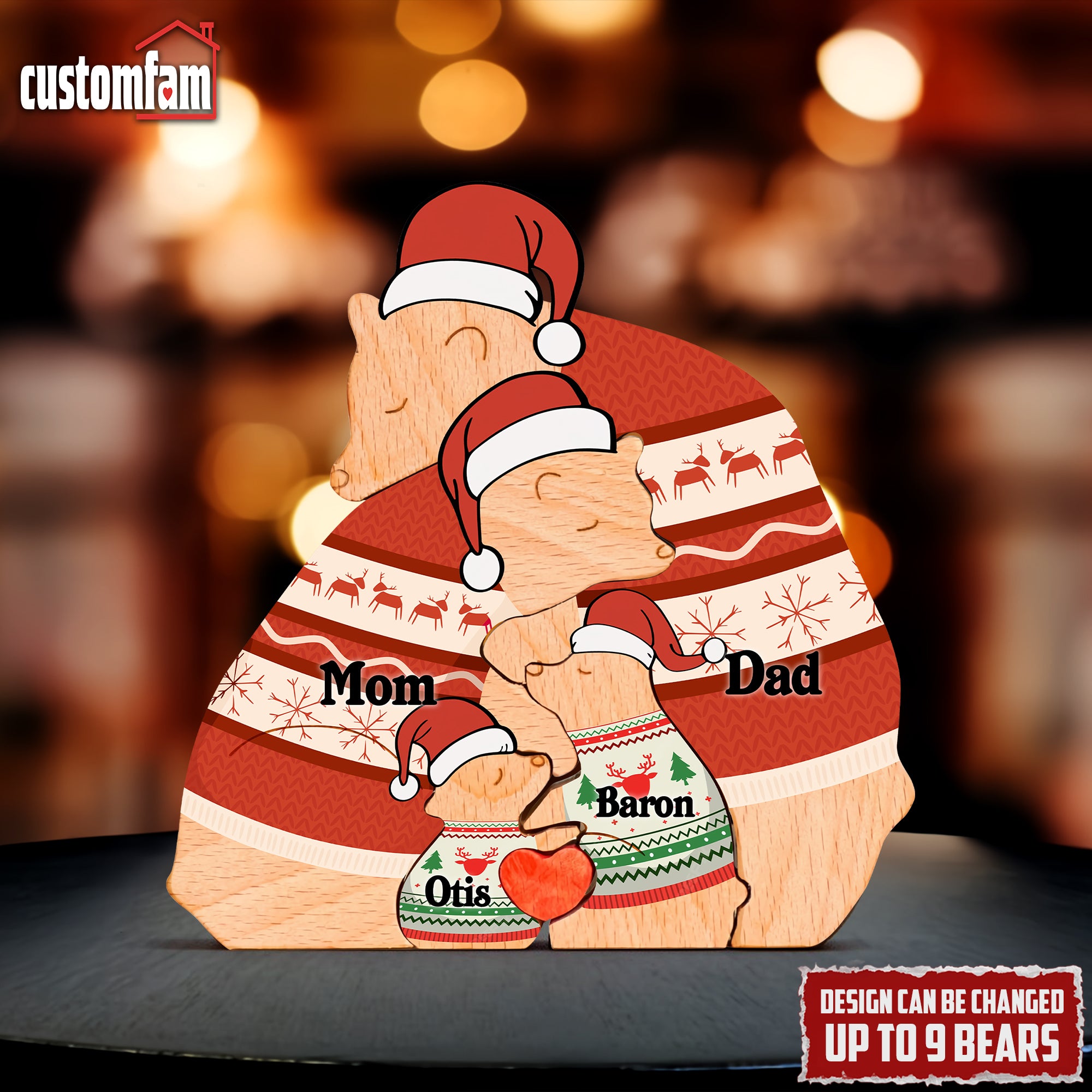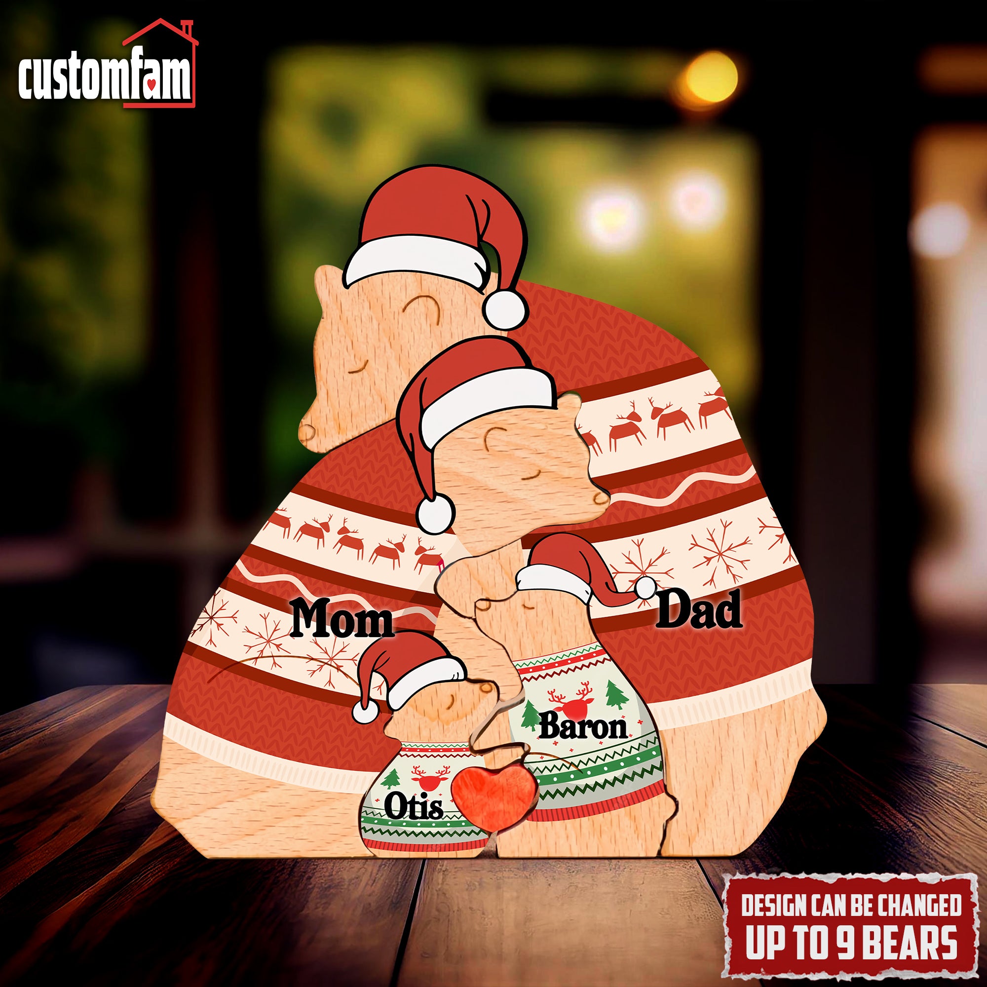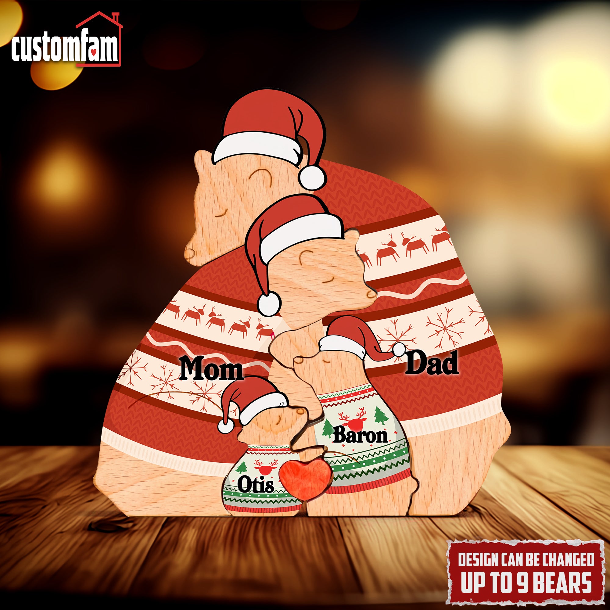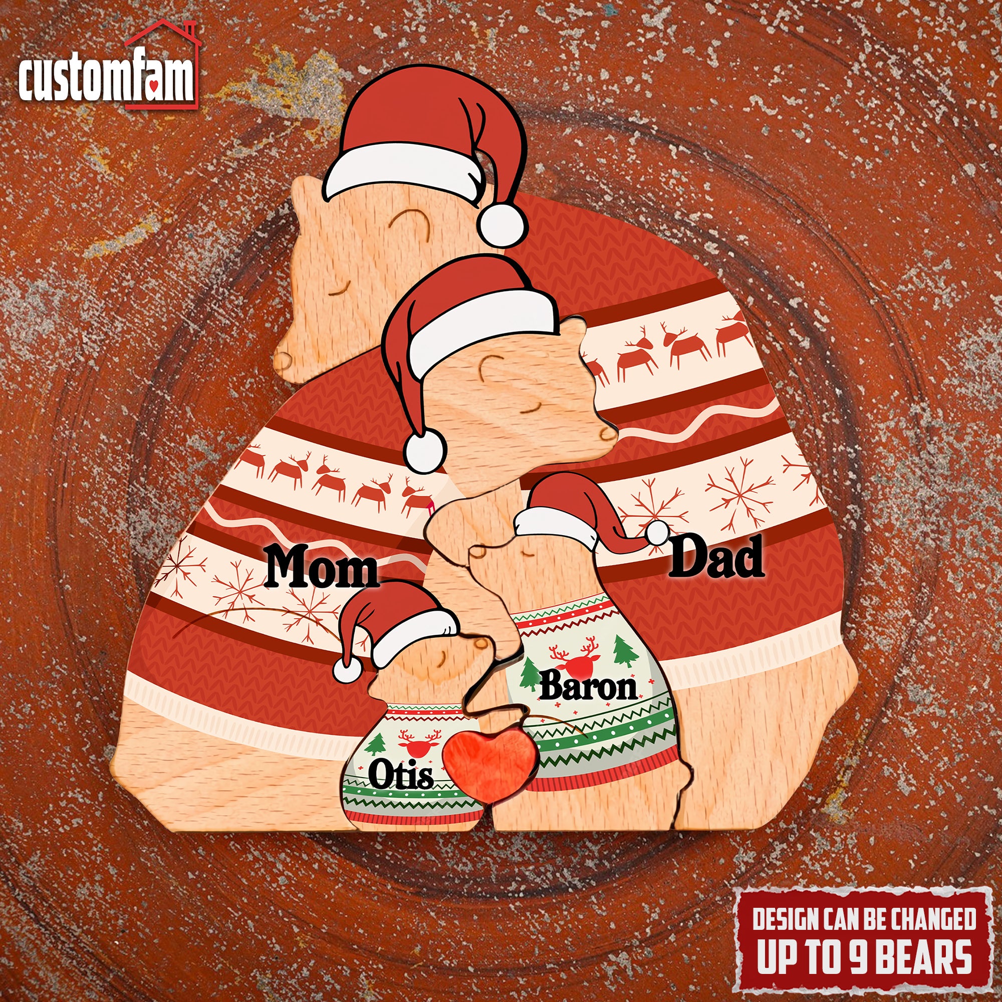 Christmas Custom Engraved Wooden Bears Family Puzzle, Christmas Family Gifts