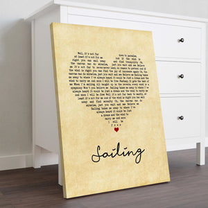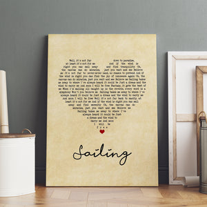 Christopher Cross Sailing Vintage Heart Song Lyric Print Personalised Lyrics Poster Wrapped Canvas Frame Gift Wall Art Custom Print
