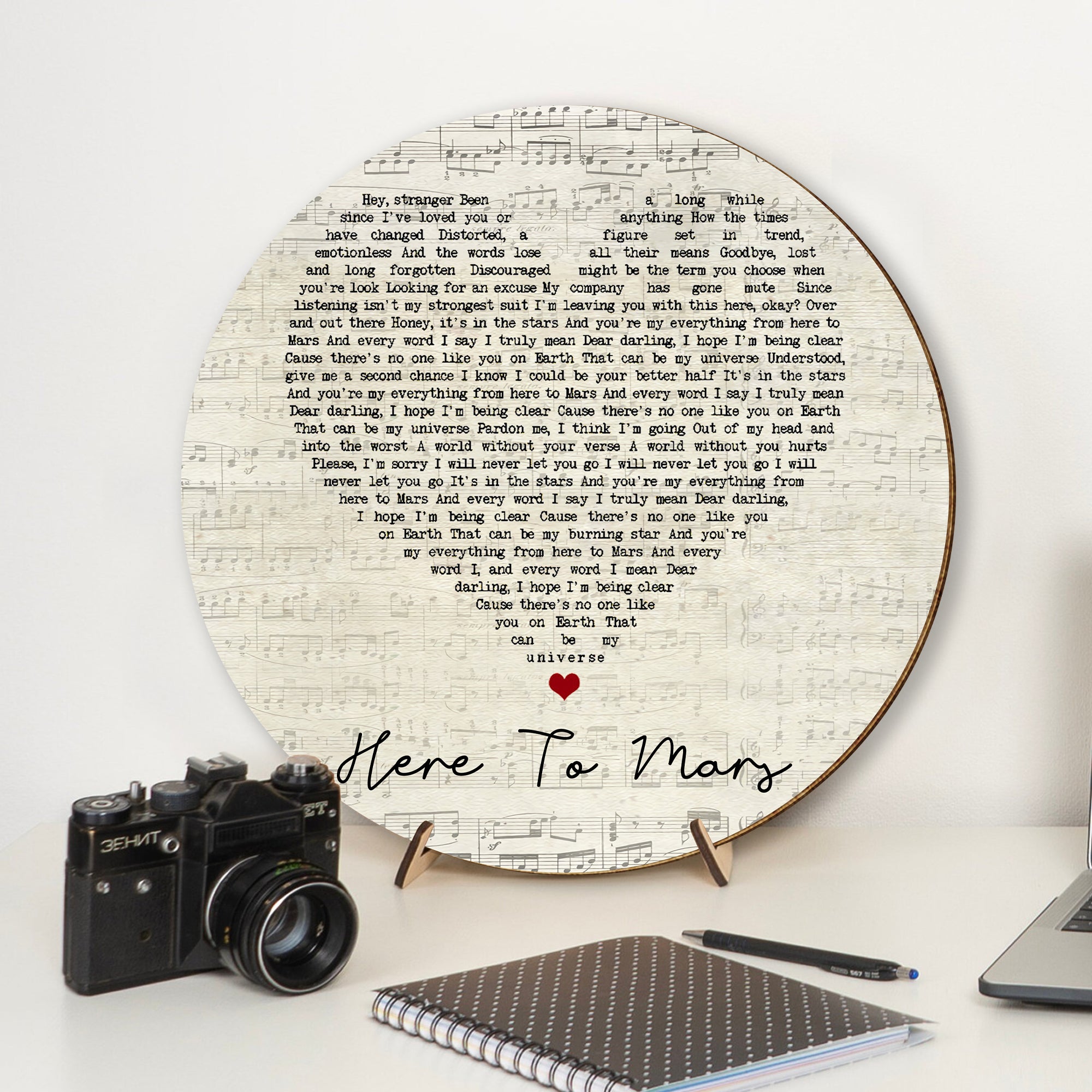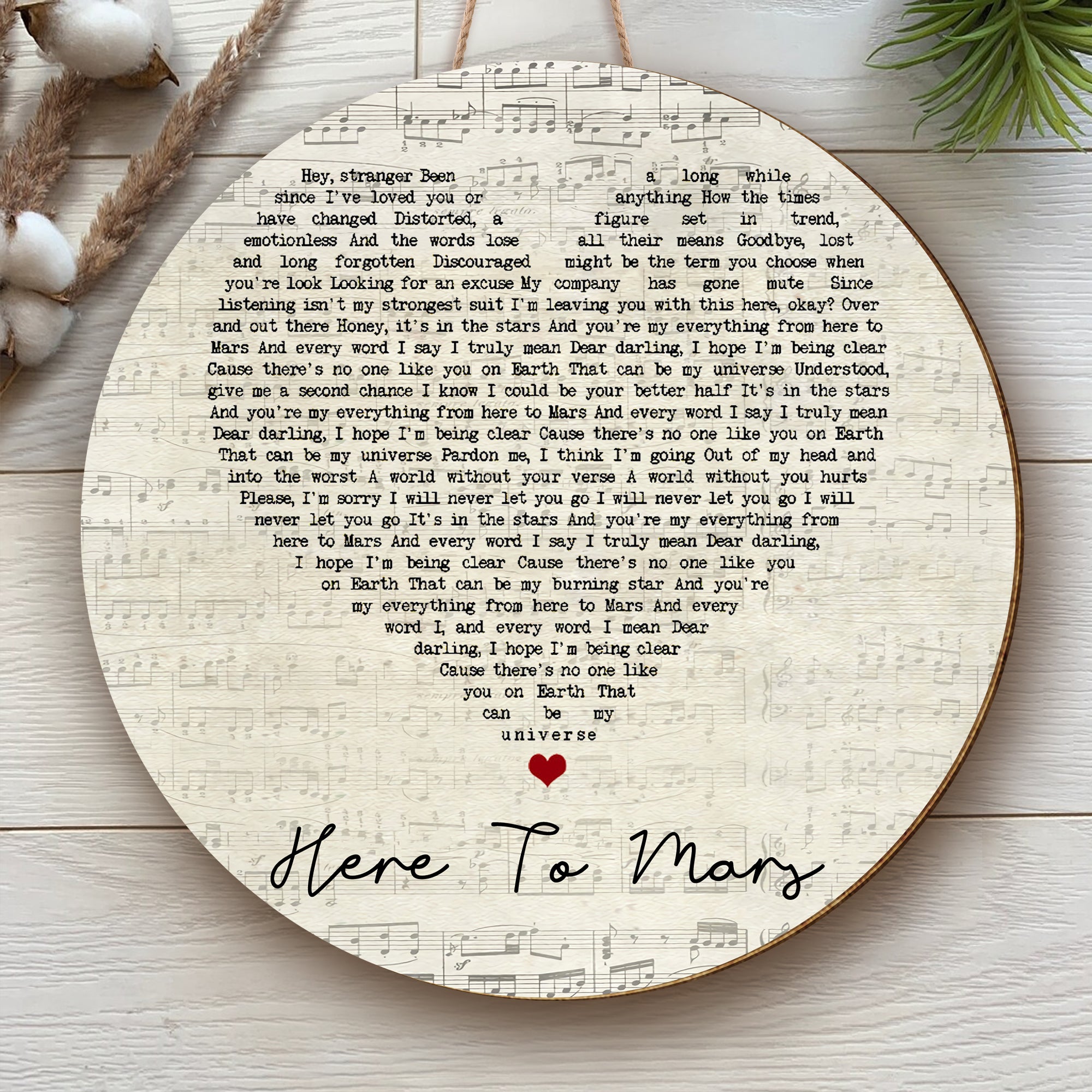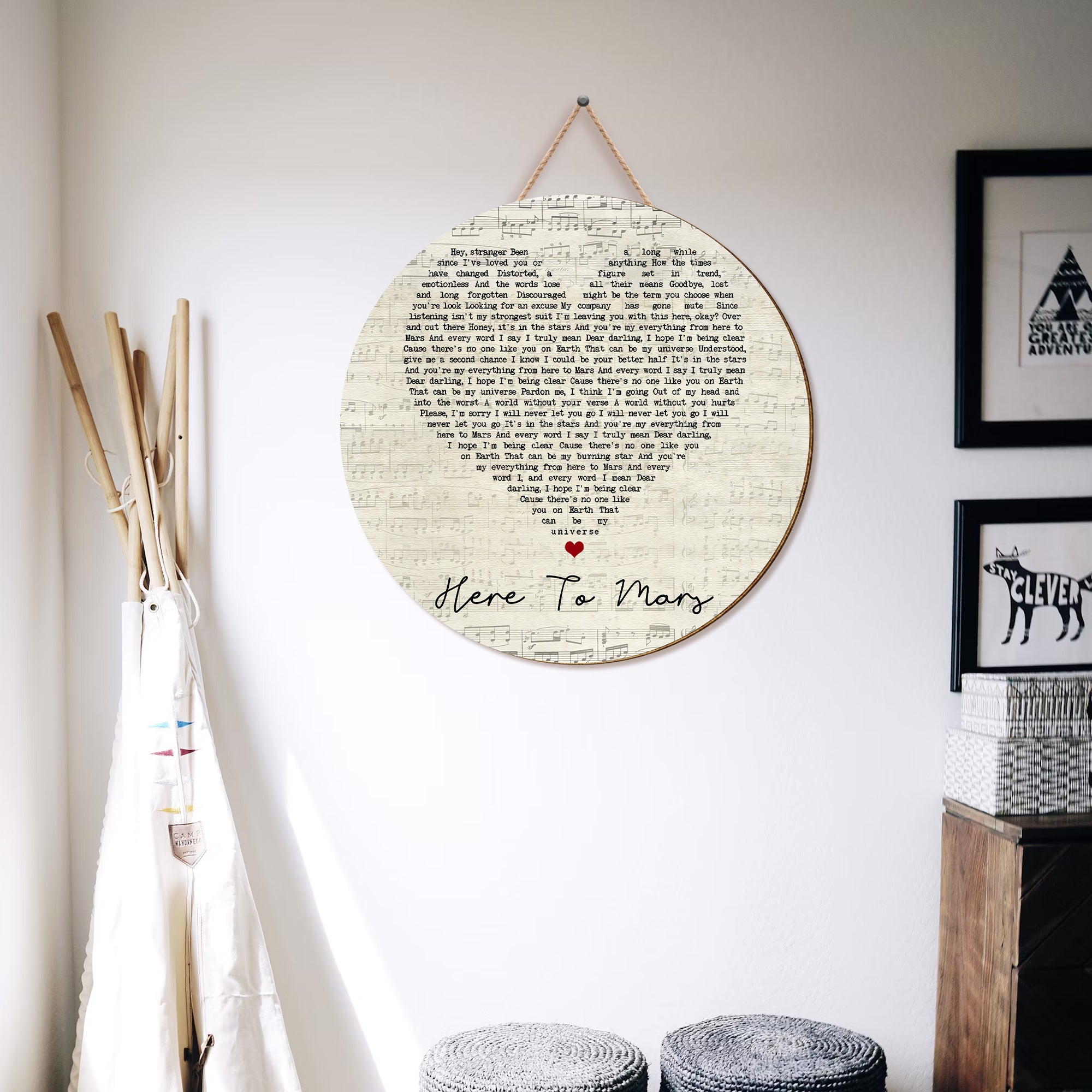Coheed And Cambria Here To Mars Script Heart Song Lyric Quote Music Poster Print Round Wood Sign, Wood Sign For Home