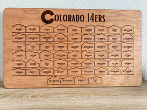 - This wooden map is designed with precision, showing the exact locations of Colorado's 14,000+ ft peaks. Each mountain is labeled clearly, and the map can include elevation and distance data for those who enjoy more technical hiking information.