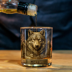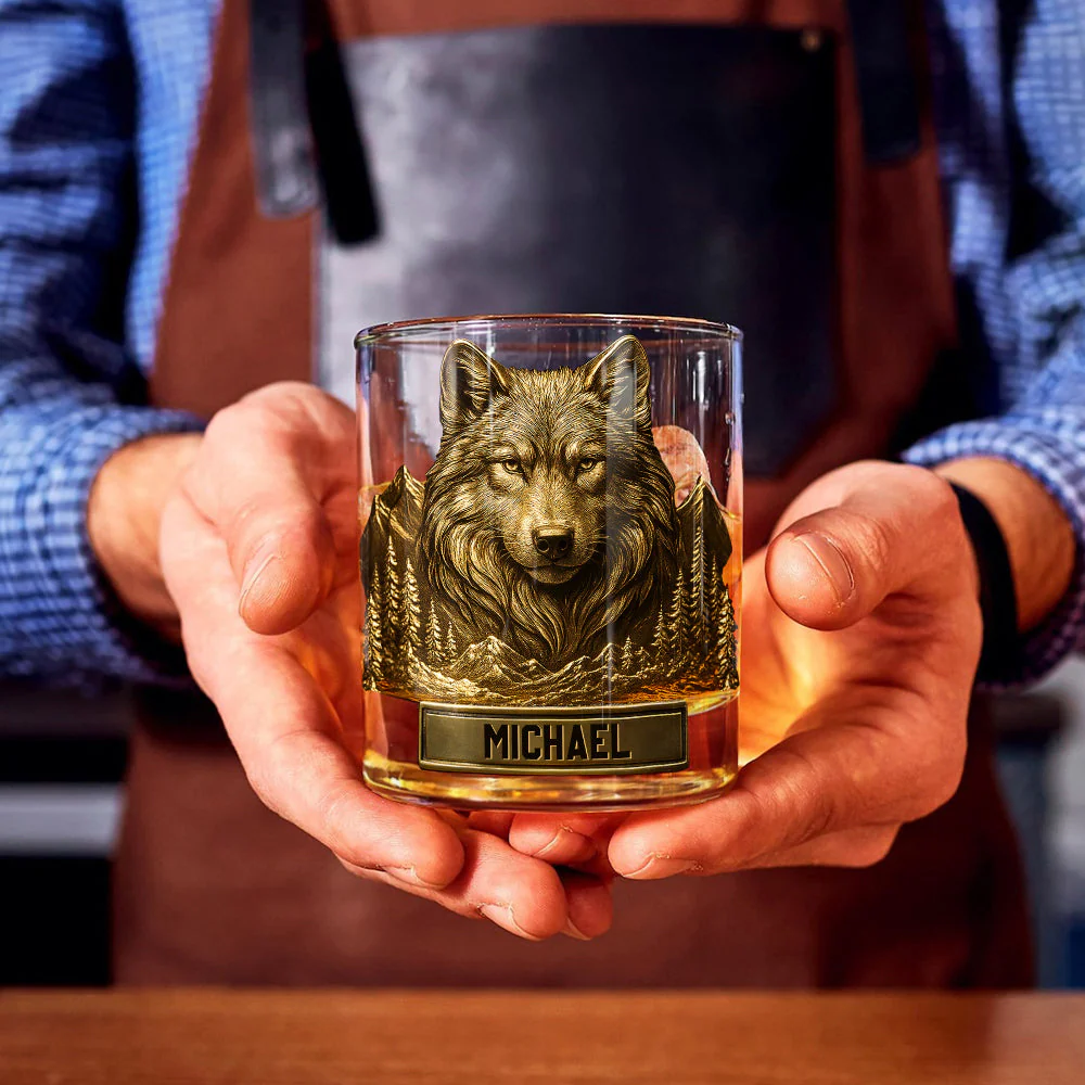 Cool Wolf Custom Whiskey Glass, Wild Vibe Personalized Whiskey Glasses, Wolf Mountain Whiskey Glass