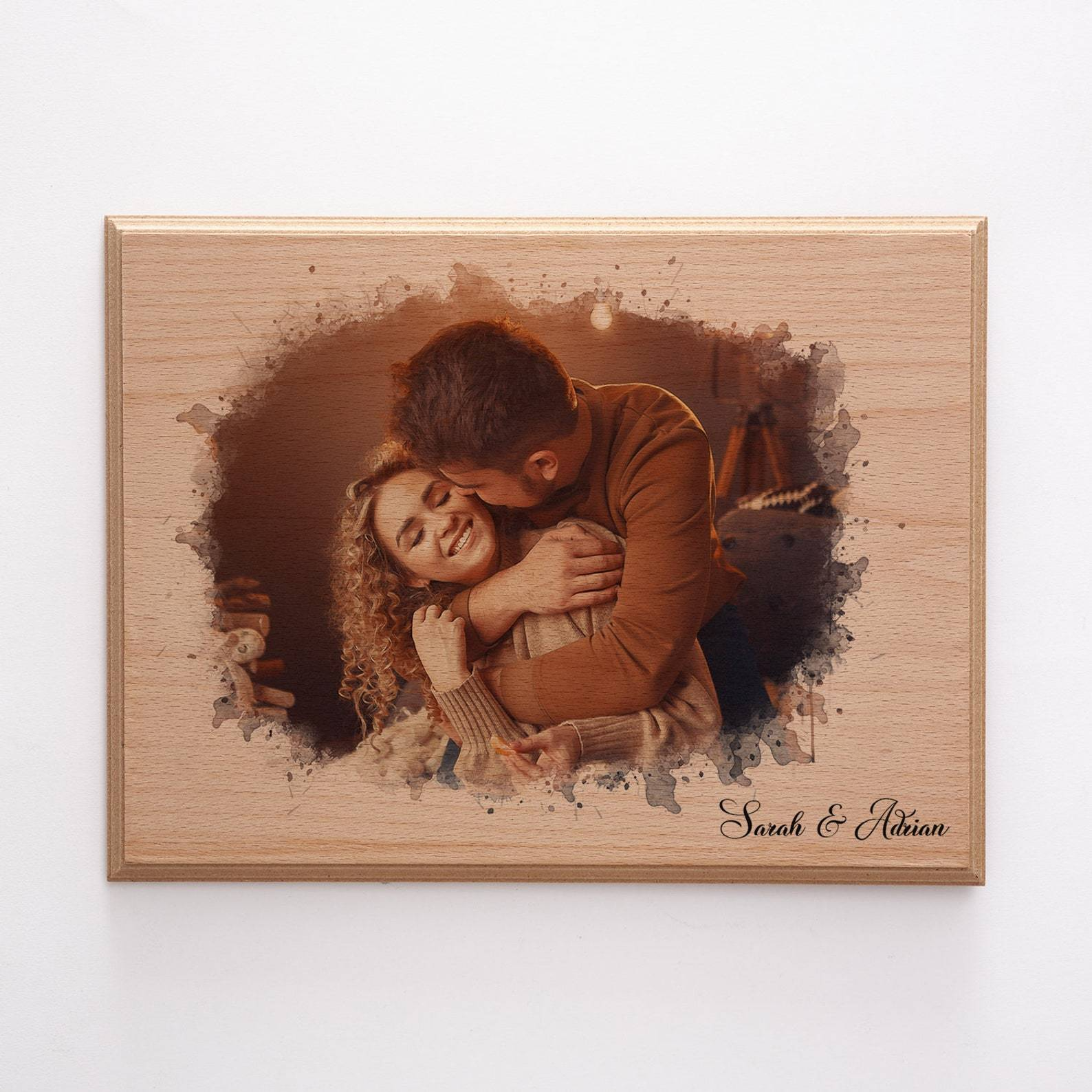 Capture the essence of your love in a unique and artistic way with the Couples Portraits Wooden Sign. This beautifully crafted wooden sign features your custom photo in a stunning watercolor style, making it a one-of-a-kind piece of art that’s perfect for couples. Whether it’s for a wedding, anniversary, or as a special gesture for your partner, this personalized sign will become a cherished keepsake that celebrates your love.