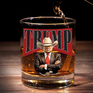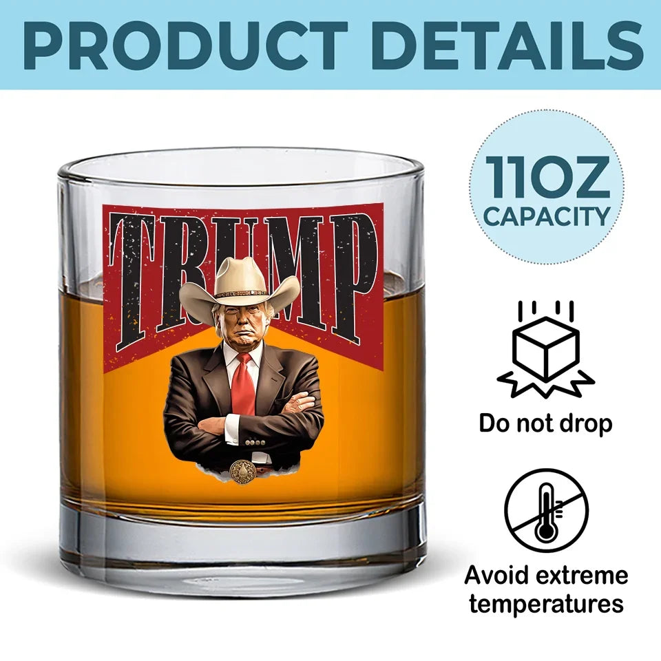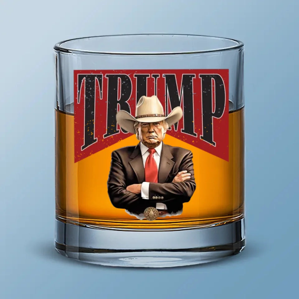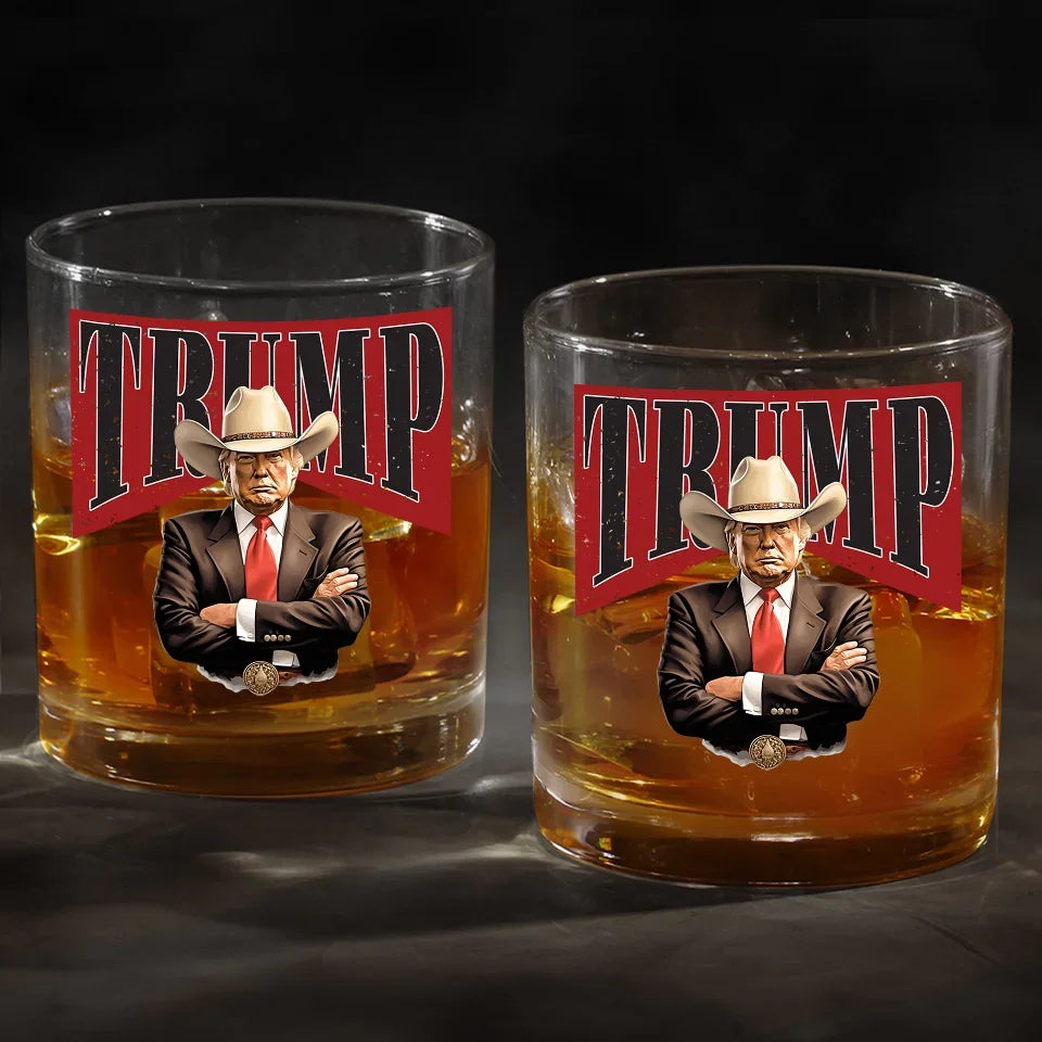Cowboy Western Trump2024 Whiskey Glass, Patriotic Wine Glass, Funny Dad Gifts
