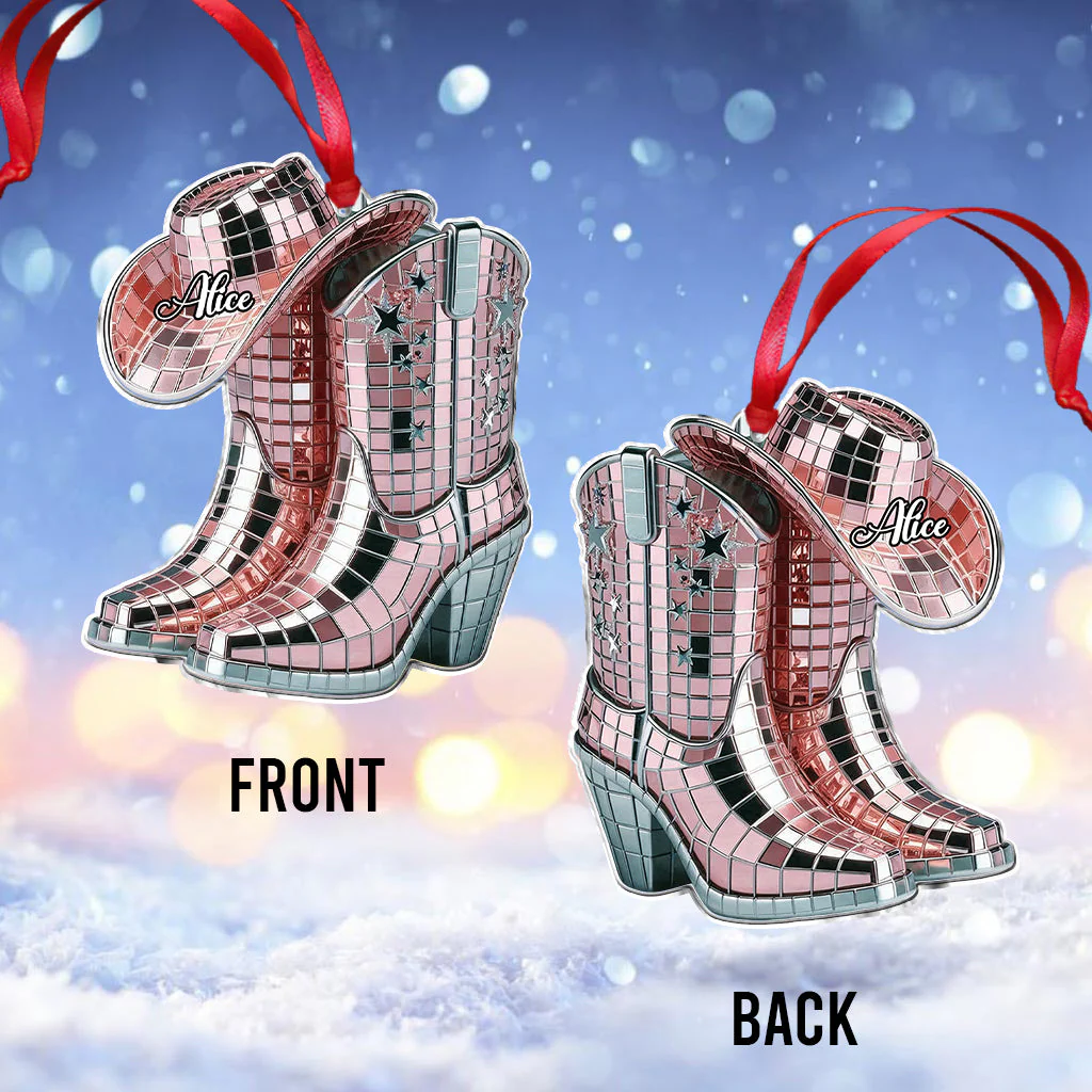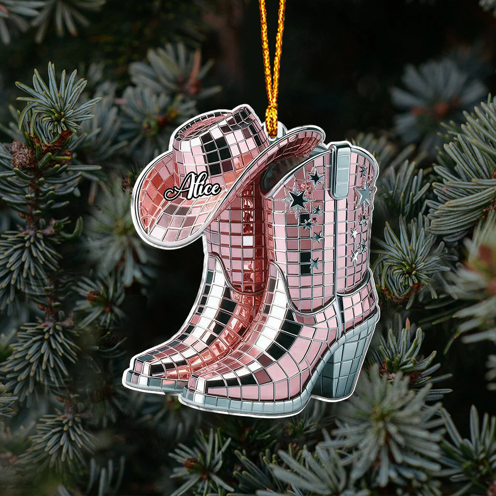 Cowgirl Boots And Hat Western Christmas Acrylic Ornament, Custom Name Xmas Decor, Christmas Gift For Her