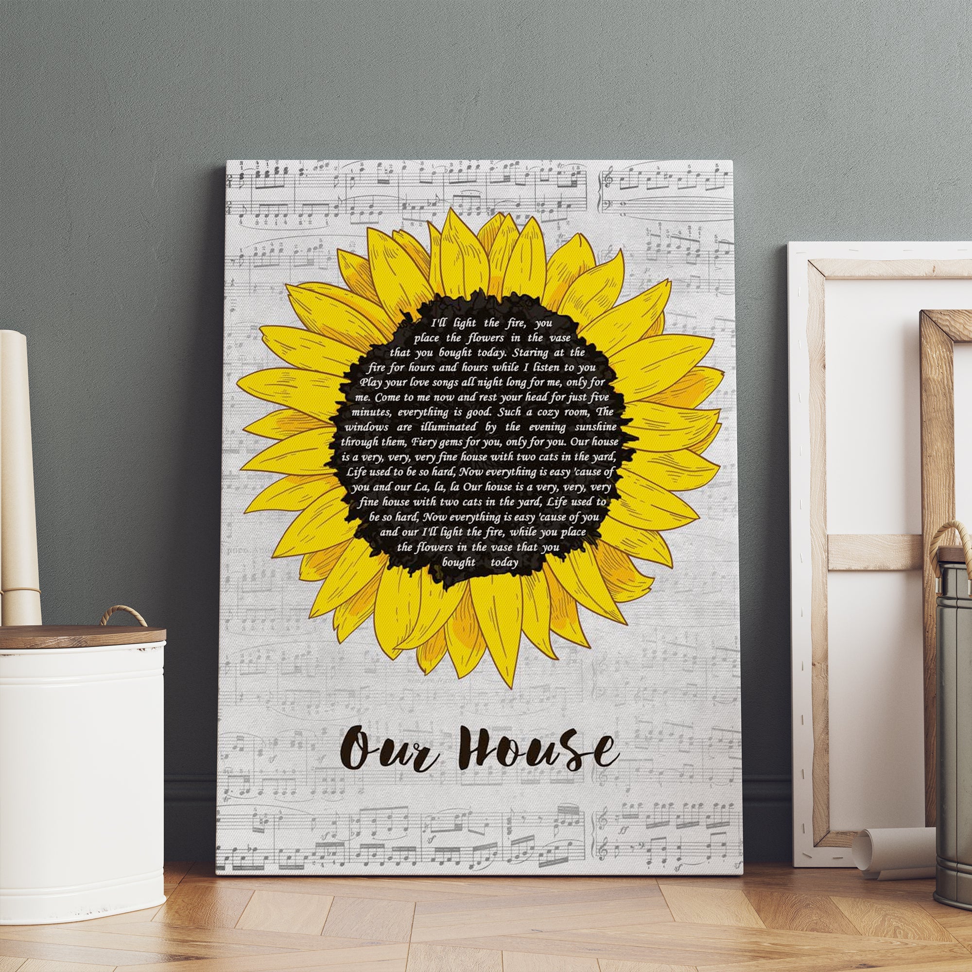 Crosby, Stills, Nash & Young Our House Grey Script Sunflower Song Lyric Art Print Canvas Print Frames