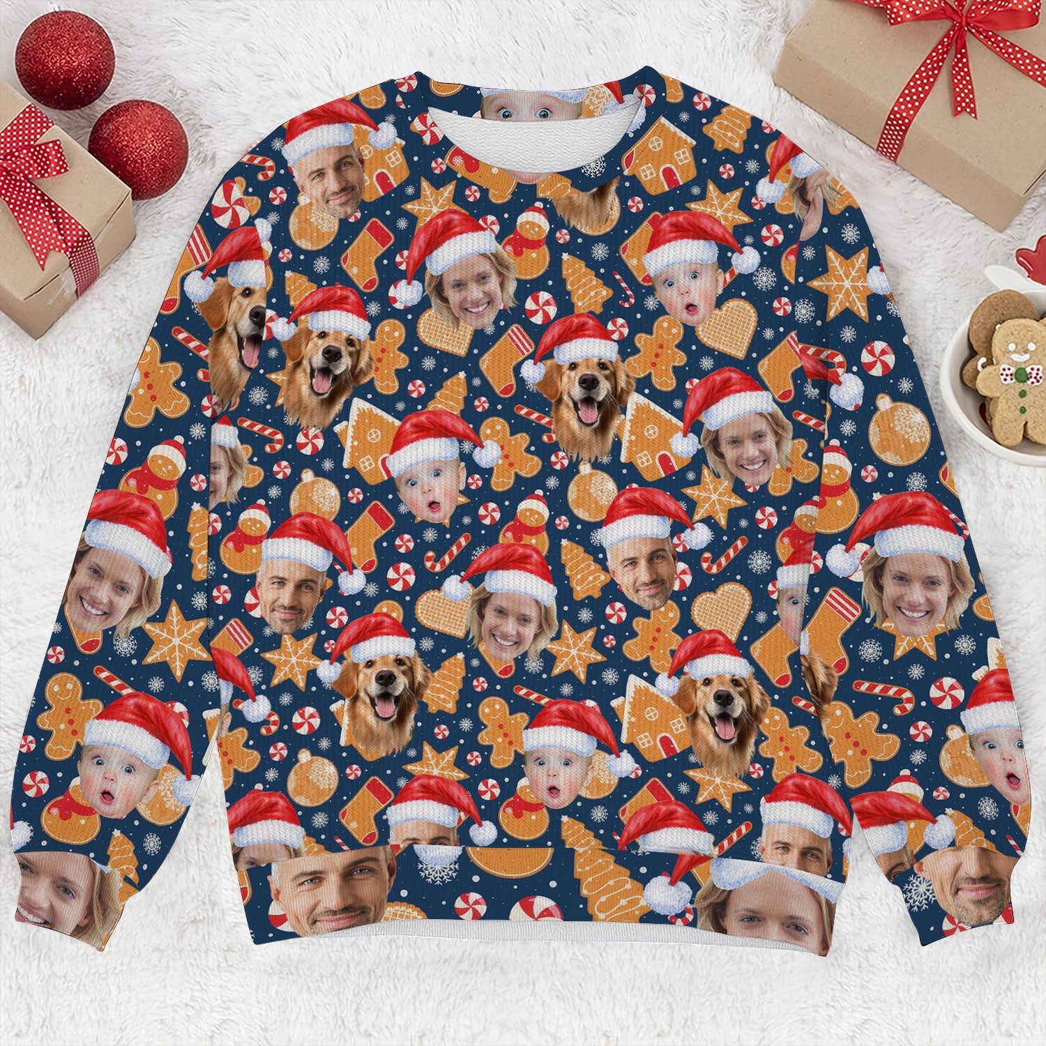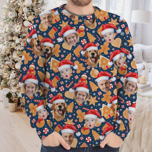 Custom Face Christmas Sweets Navy Golf Ugly Sweater, Golf Ugly Christmas Sweater, Christmas Golf Shirt