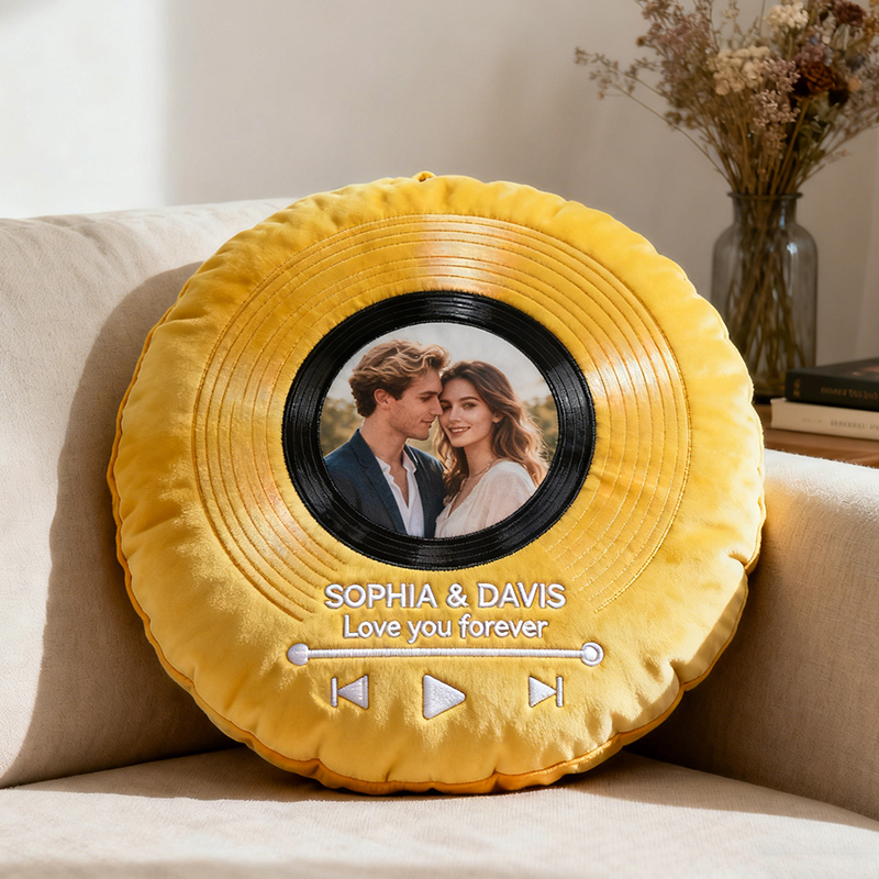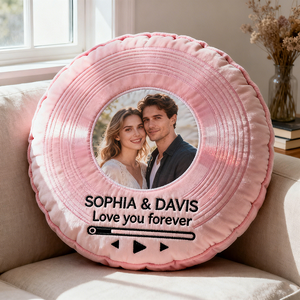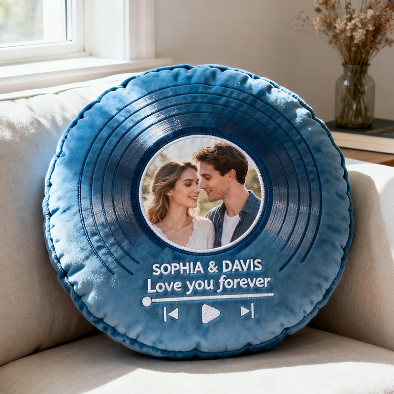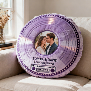 Custom Couple Portrait Print Vinyl Record Custom Shape Pillow, Personalized Gifts For Couple, Funny Valentines Gift