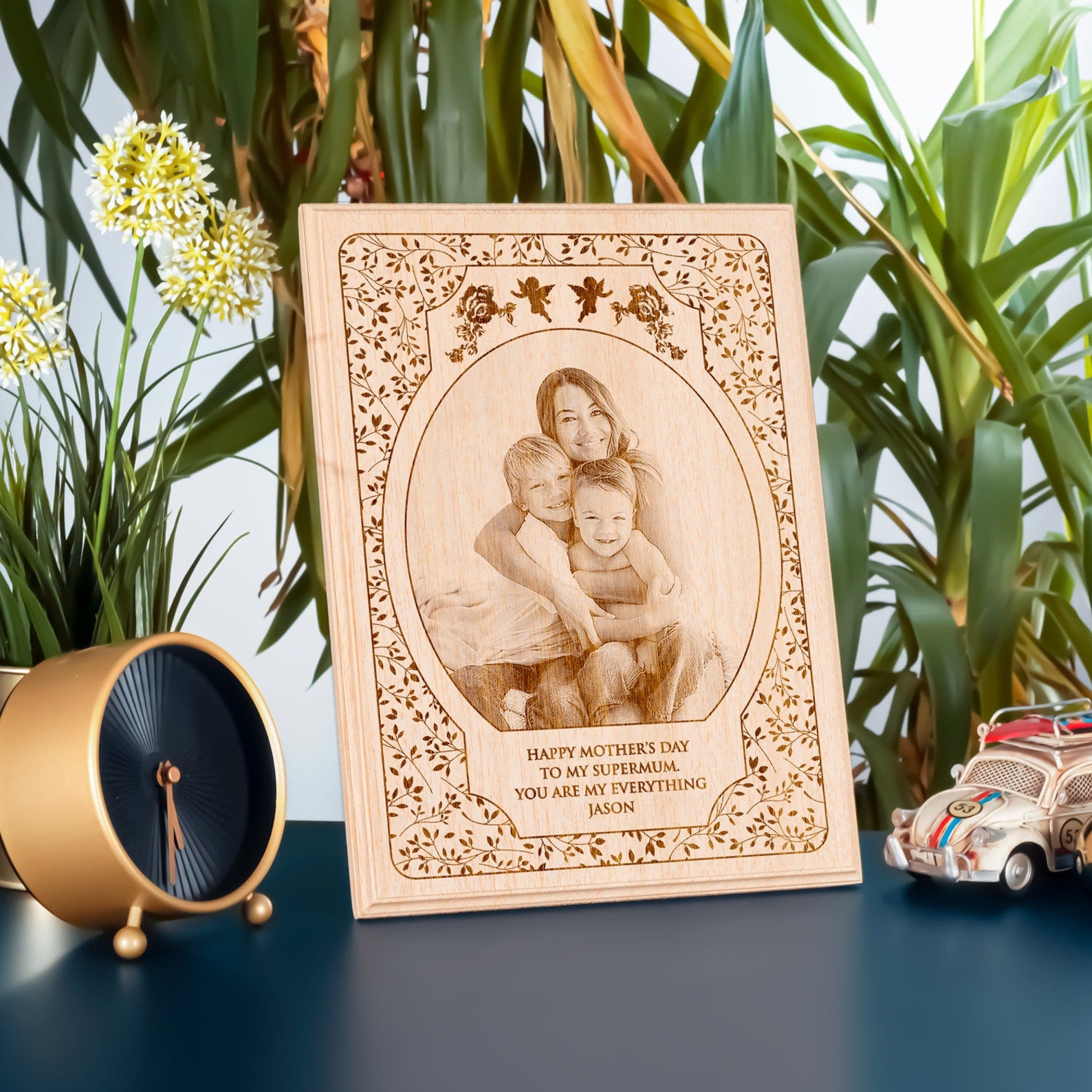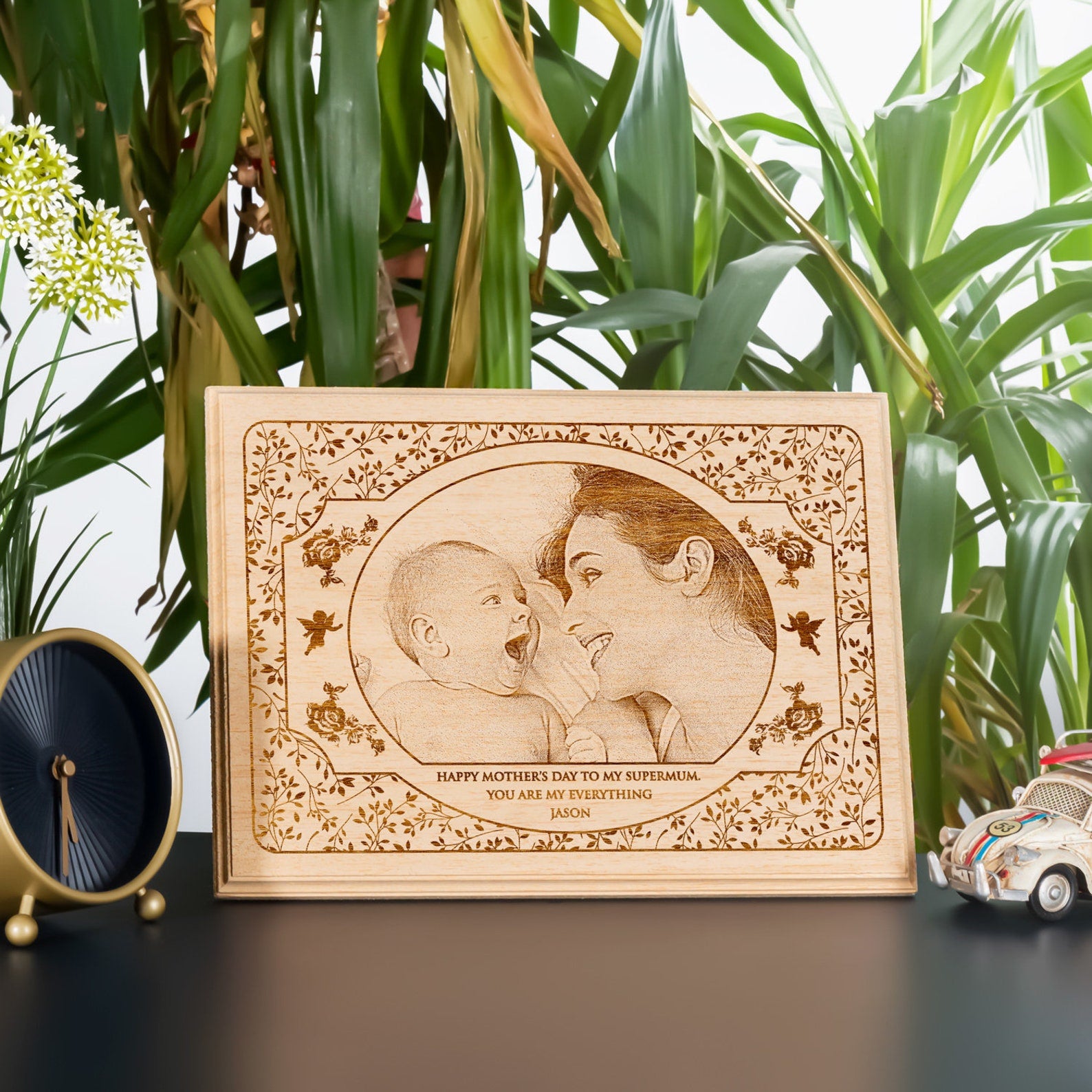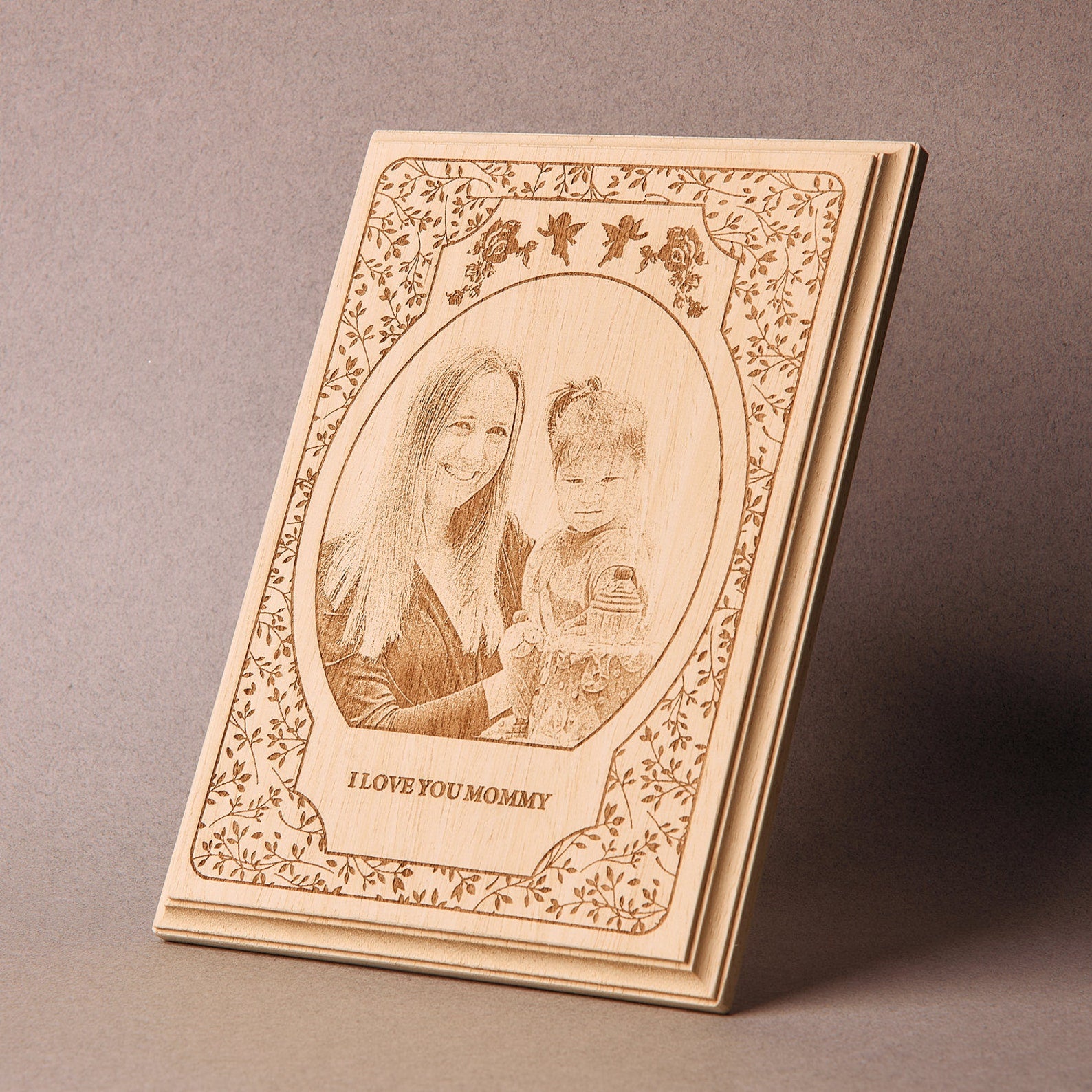 Custom Engraved Photo On Wood, Watercolor Wall Art, Mother's Day Gift, Gift For Mom