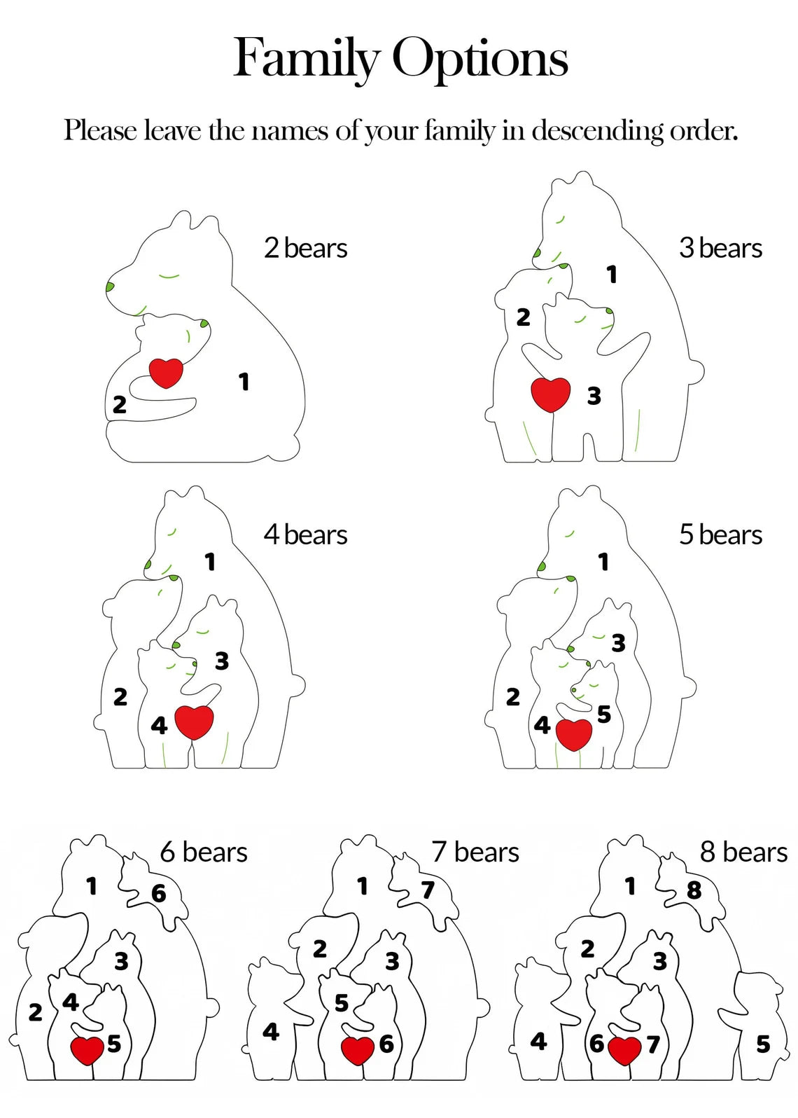 Are you looking for a meaningful and eco-friendly gift that fits the special occasion? Our handmade bear animal puzzles are the perfect choice! These unique items are made from natural wood. Personalised with your family's names to make it a unique family bond and cherished memory, it will be ideal for anniversaries, birthdays, New Year's celebrations and welcoming new family members, and can be treasured forever, with engraved names that won't come off.