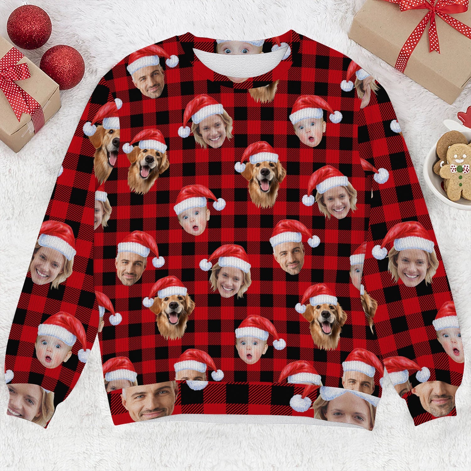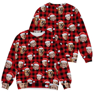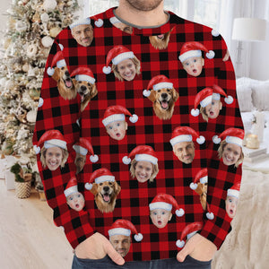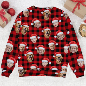 Custom Face Black And Red Checkered Golf Ugly Sweater, Christmas Golf Shirt, Golf Sweater, Christmas Golf Gift