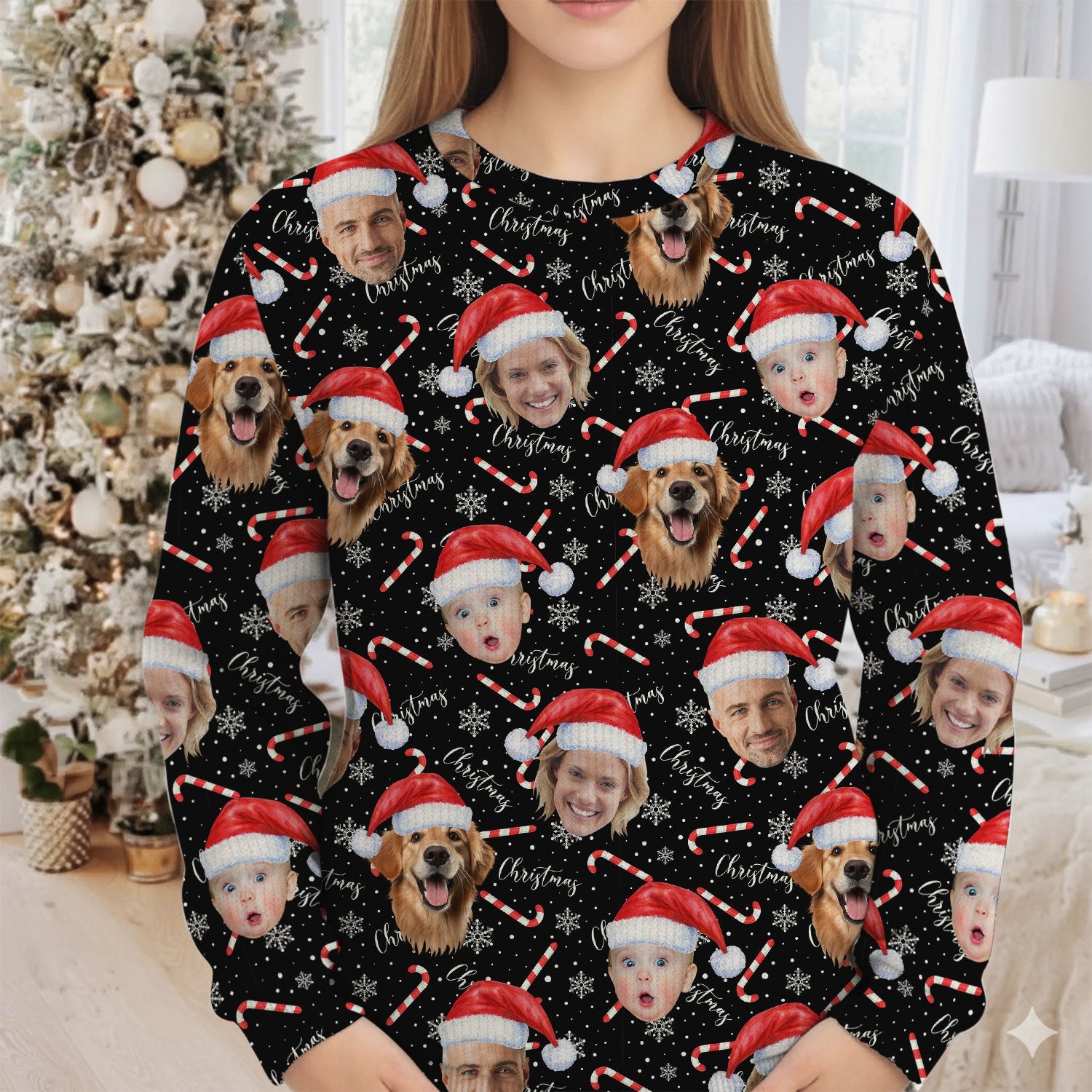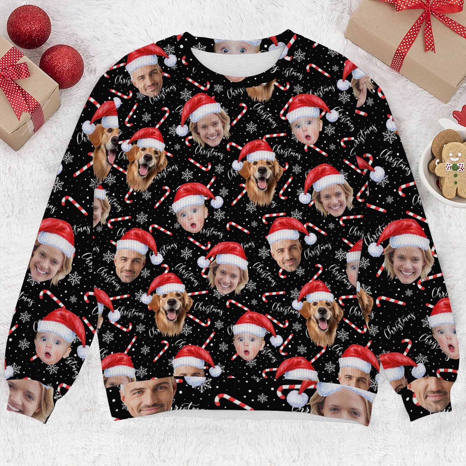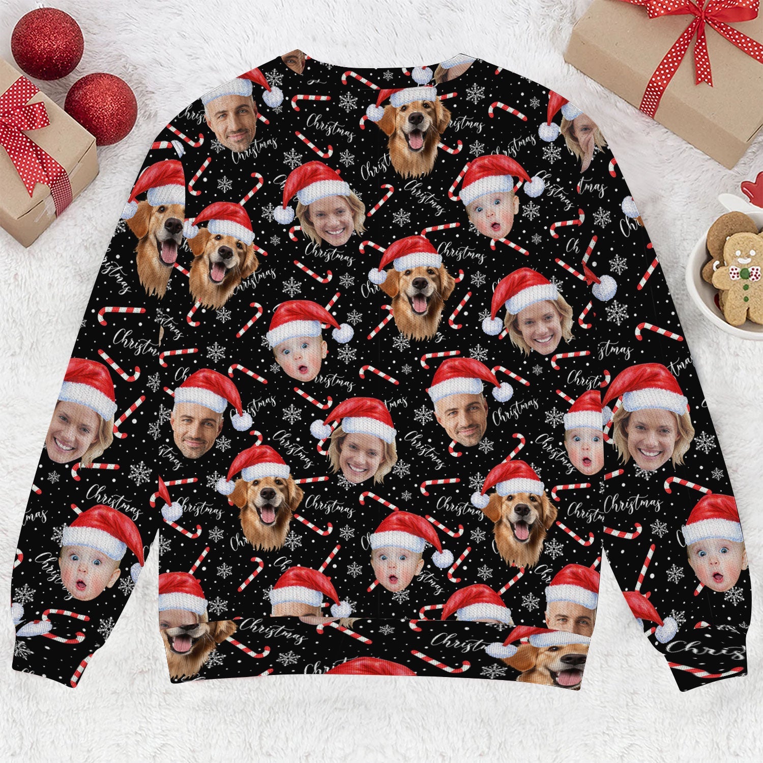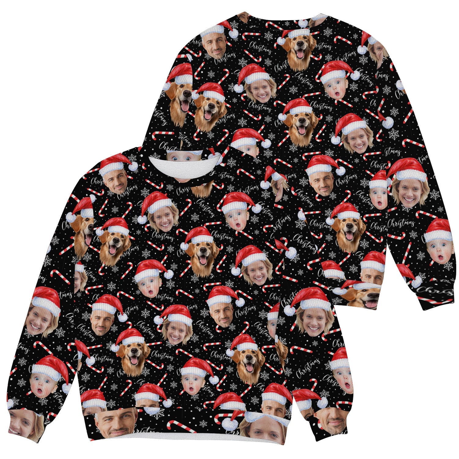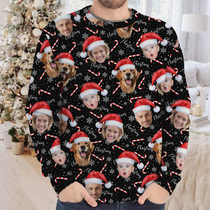 Custom Face Candy Cane Christmas Black Golf Ugly Sweater, Christmas Golf Shirt, Golf Sweater, Christmas Golf Gift
