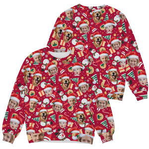 Custom Face Christmas Icons Red Golf Ugly Sweater, Christmas Golf Shirt, Golf Sweater, Christmas Golf Gift