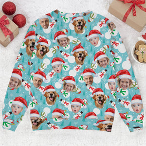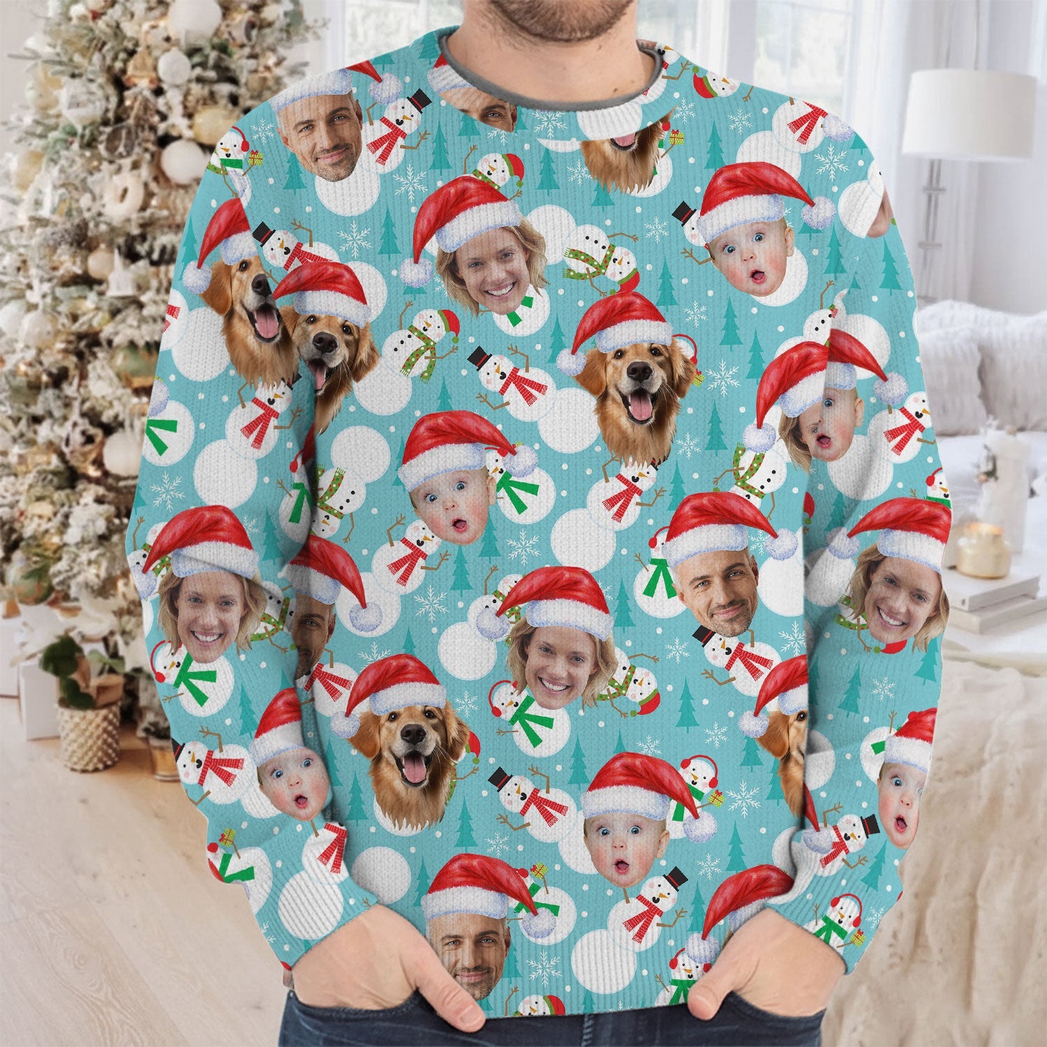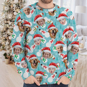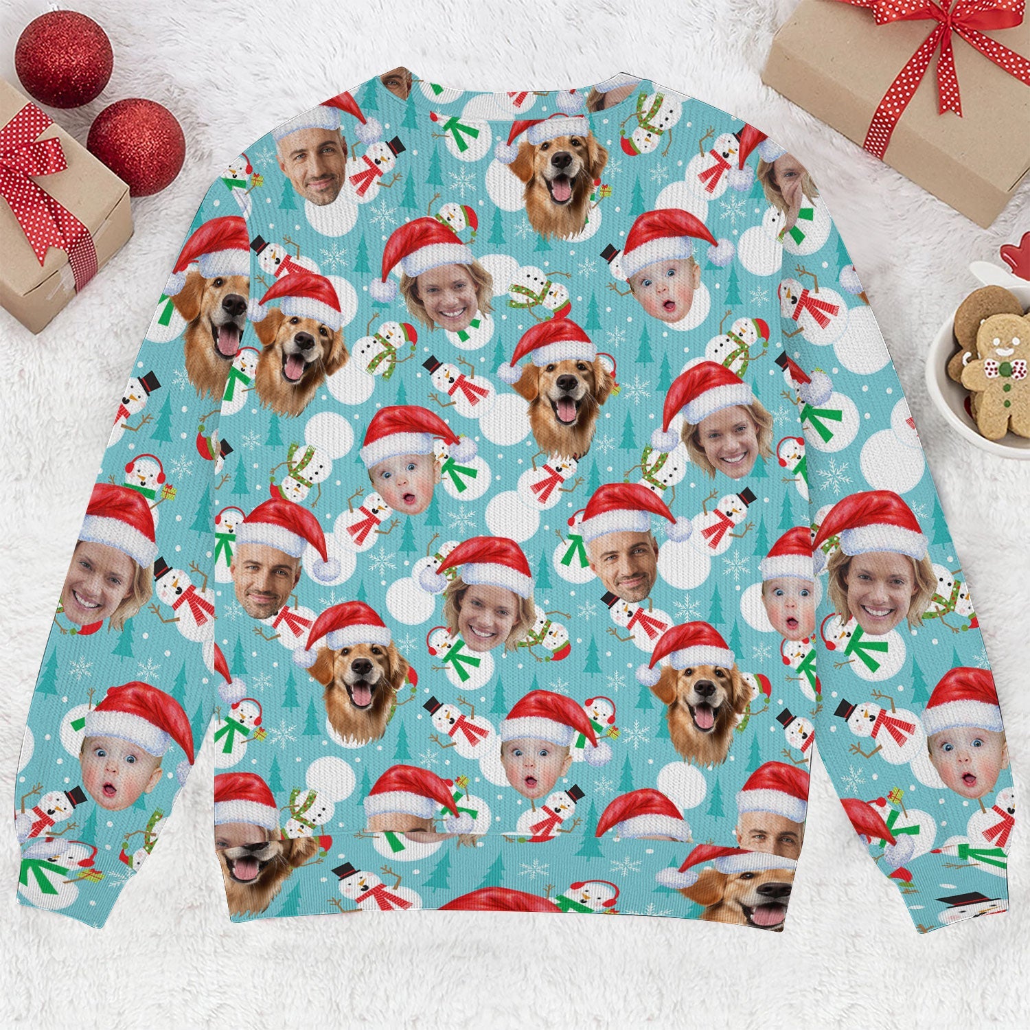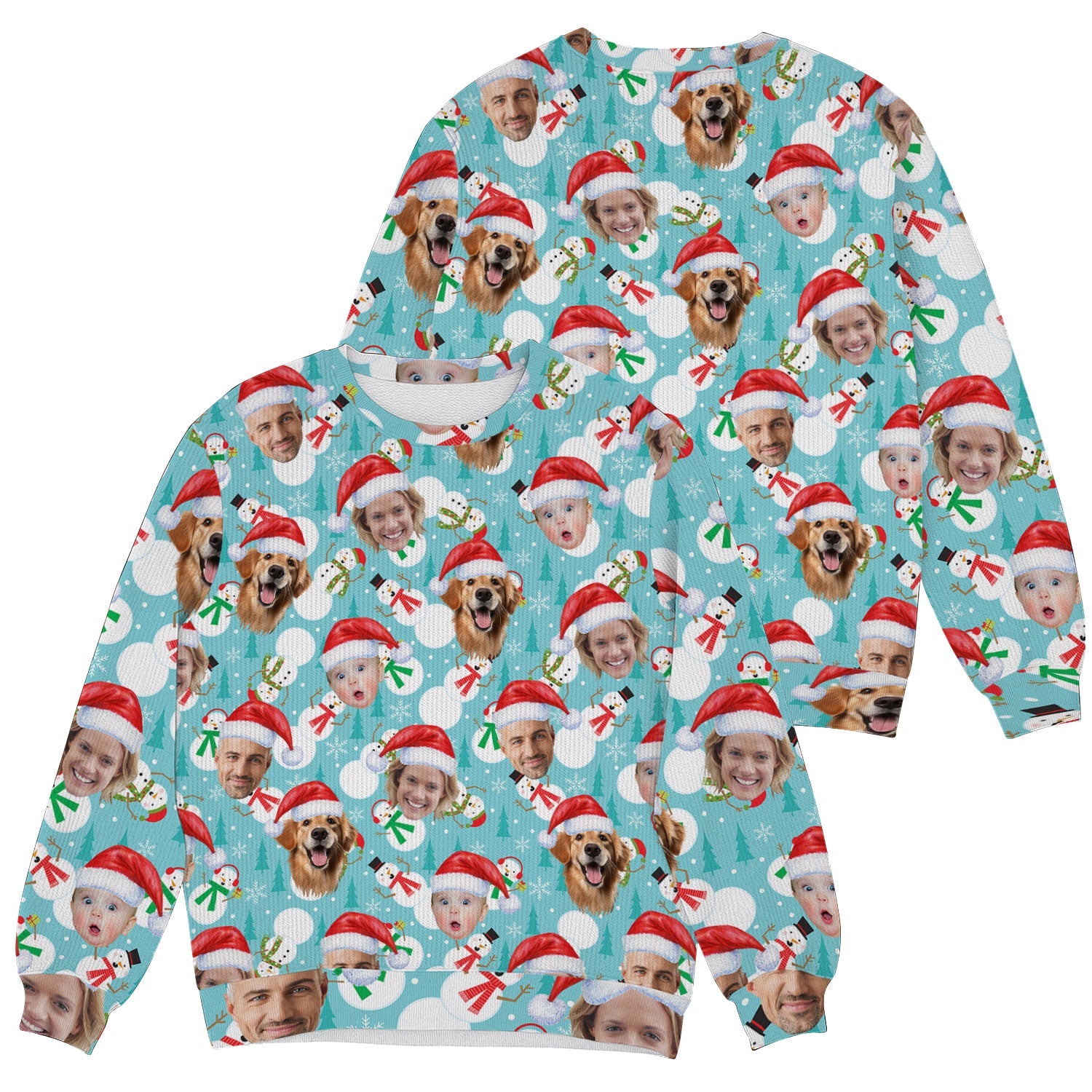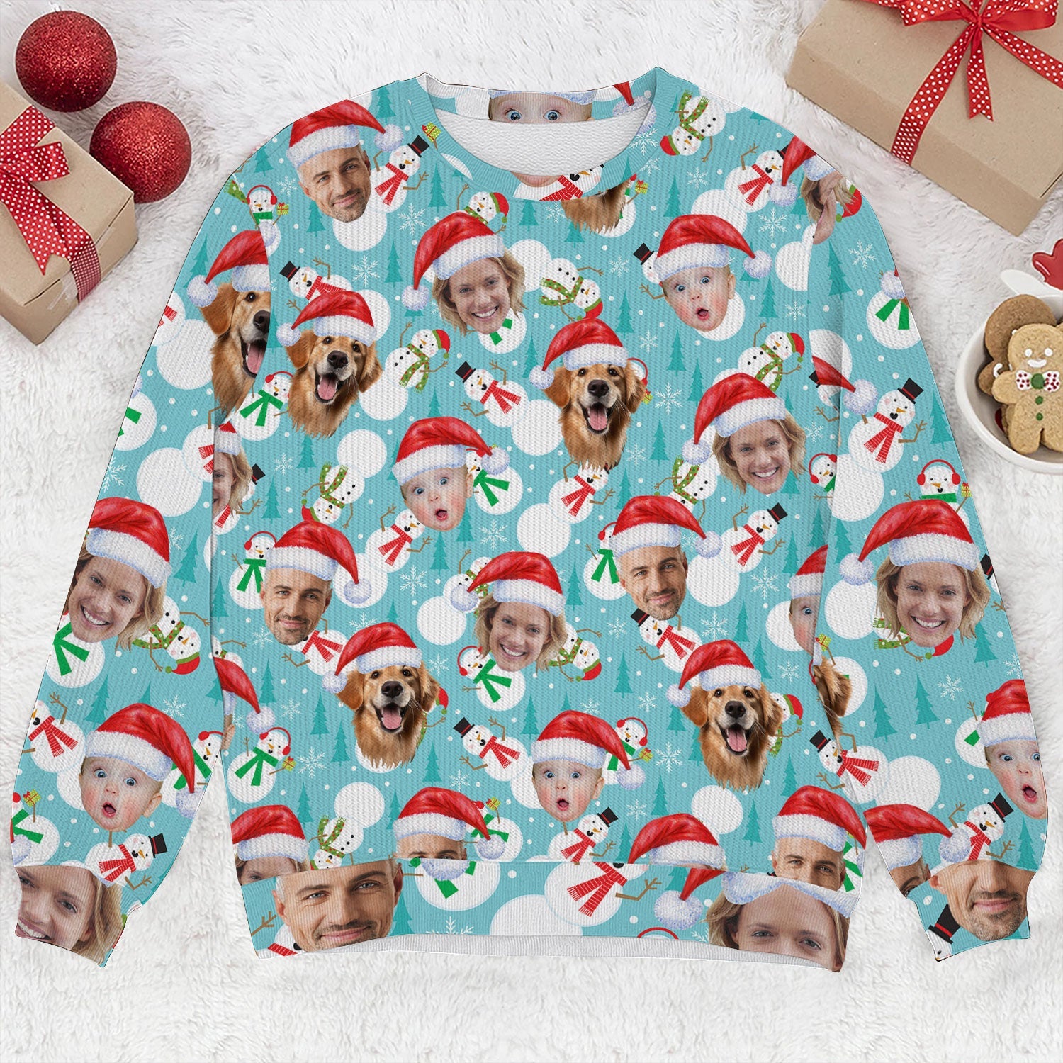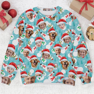 Custom Face Cute Snowman Ice Blue Golf Ugly Sweater, Christmas Golf Shirt, Golf Sweater, Christmas Golf Gift