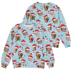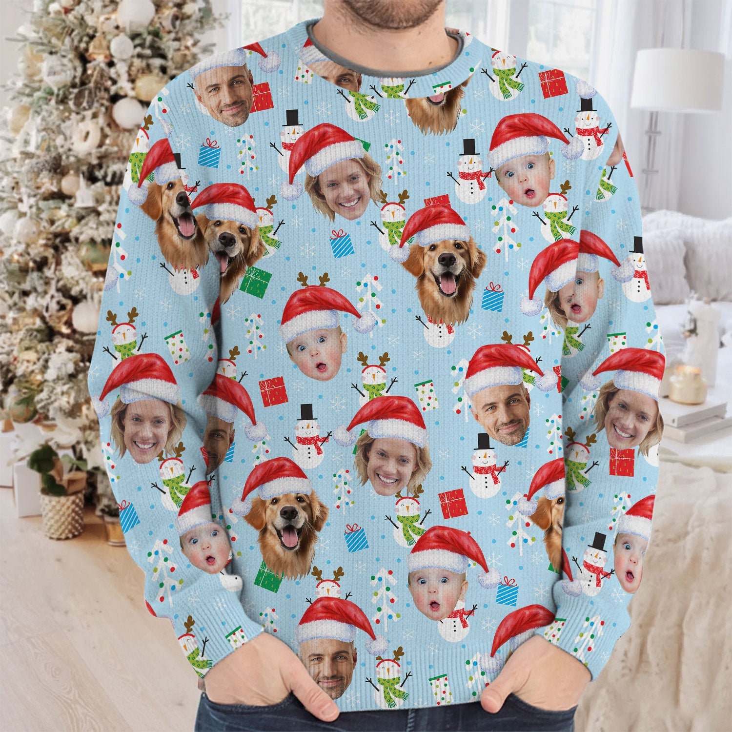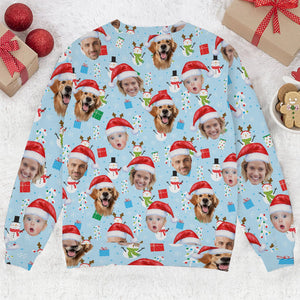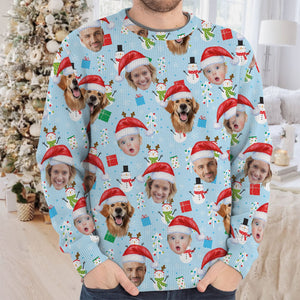 Custom Face Cute Snowman Pastel Blue Golf Ugly Sweater, Golf Ugly Christmas Sweater, Christmas Golf Shirt