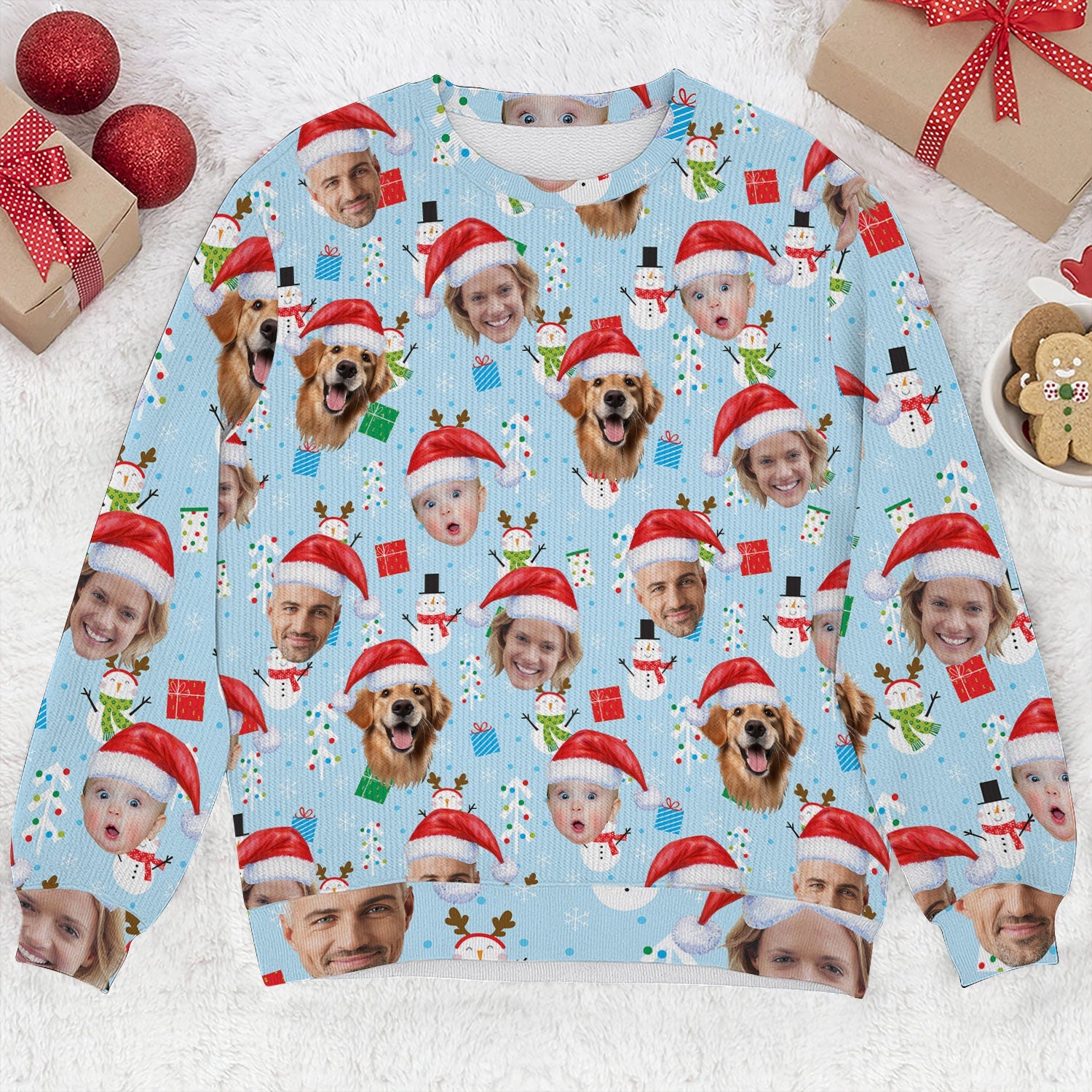 Introducing the Custom Face Cute Snowman Pastel Blue Golf Ugly Sweater, Golf Ugly Christmas Sweater, Christmas Golf Shirt, where bad shots meet good vibes and Christmas spirit takes a full swing.