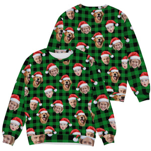 Custom Face Green Buffalo Plaid Golf Ugly Sweater, Christmas Golf Shirt, Golf Sweater, Christmas Golf Gift