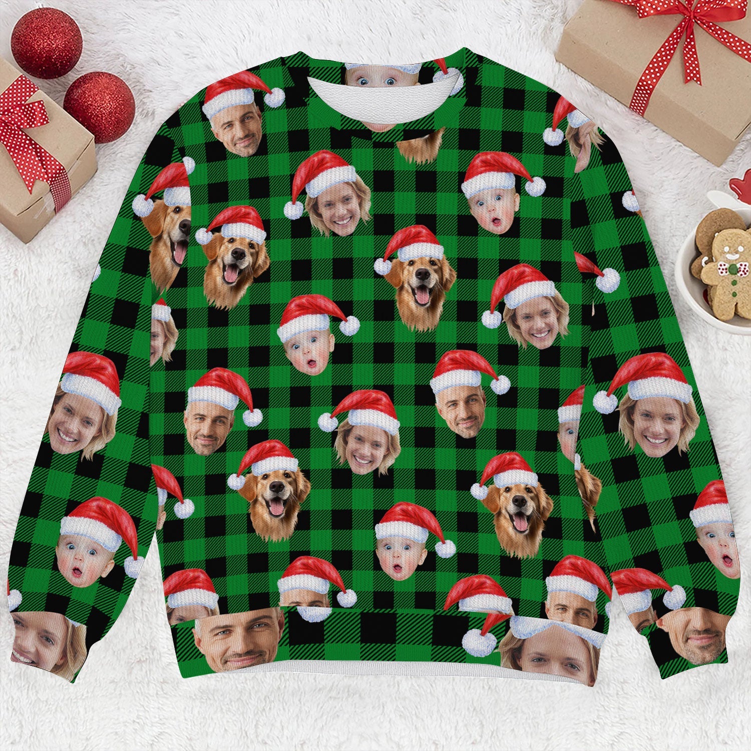 Introducing the Custom Face Green Buffalo Plaid Golf Ugly Sweater, Christmas Golf Shirt, Golf Sweater, Christmas Golf Gift, where bad shots meet good vibes and Christmas spirit takes a full swing.