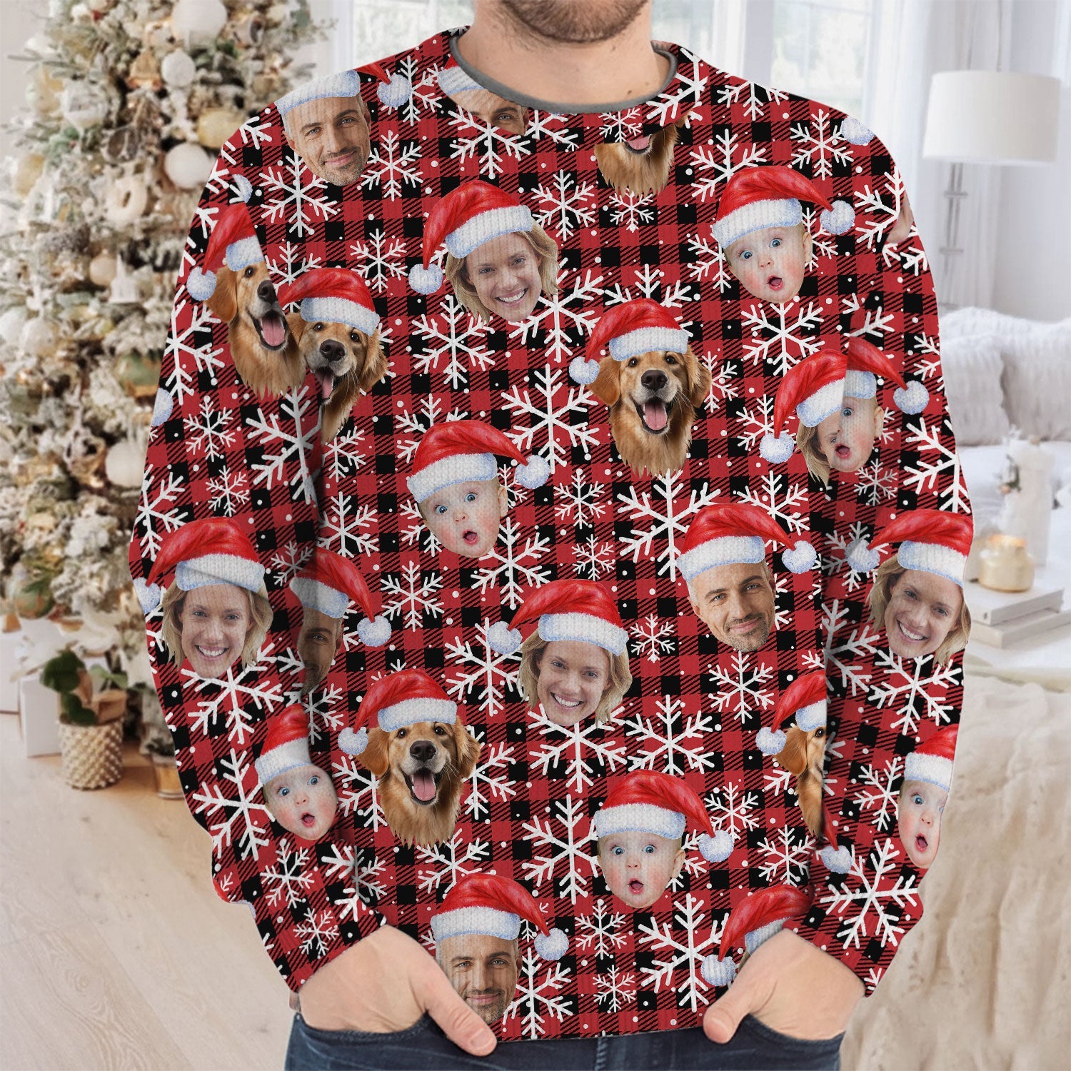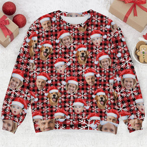 Custom Face Red And Black Checkered Golf Ugly Sweater, Golf Ugly Christmas Sweater, Christmas Golf Shirt