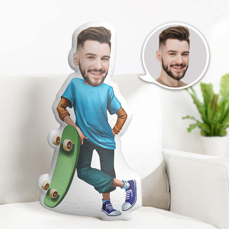 Custom Face Skate Guy Funny Throw Pillow, Custom Face Pillow With Body, Mini Me Pillow, Personalized Valentines Gift