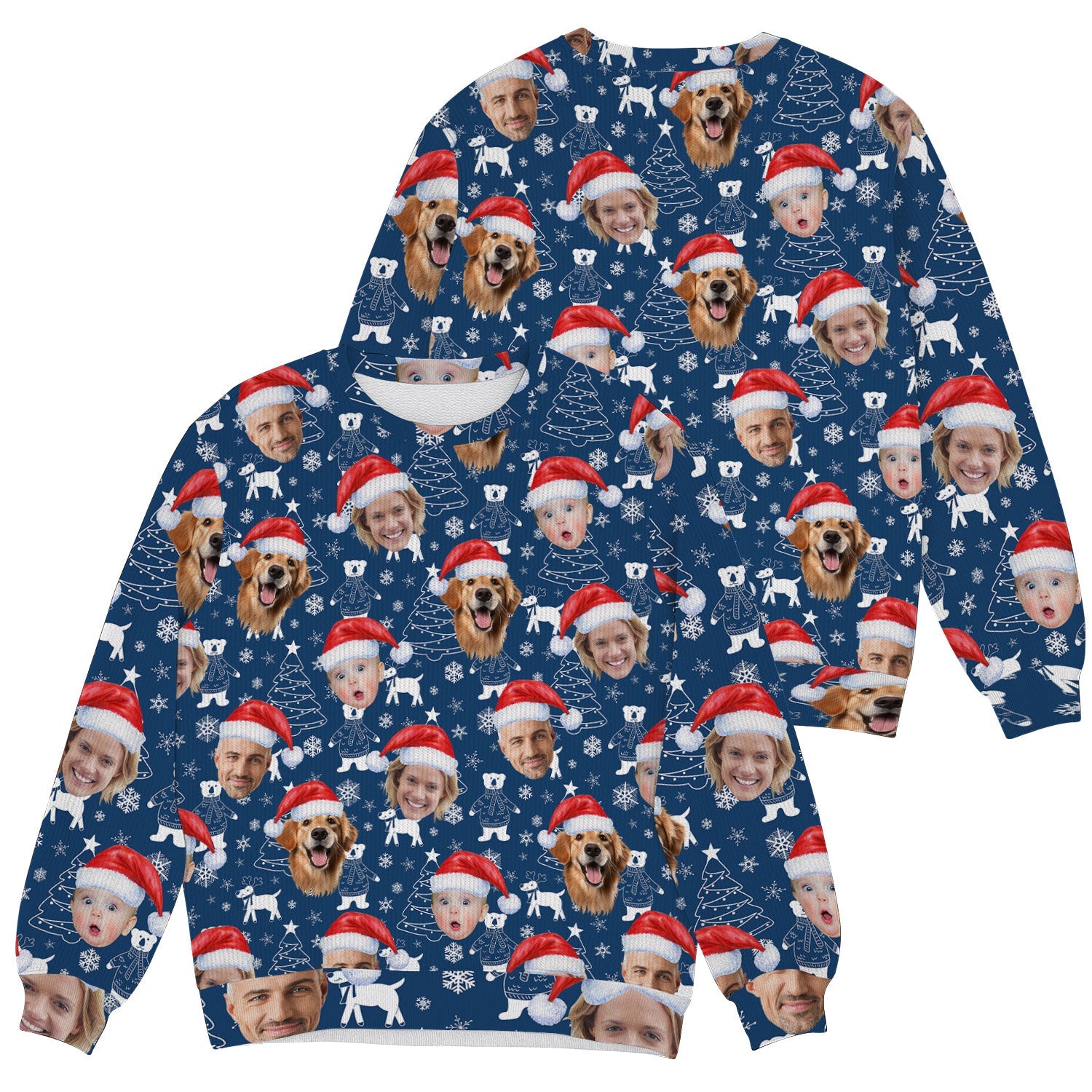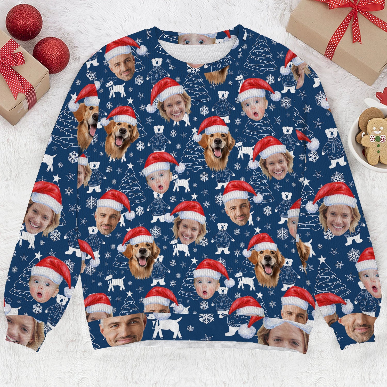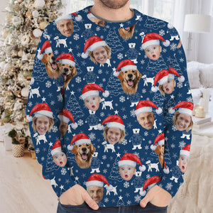 Custom Face Snow Figure Navy Golf Ugly Sweater, Golf Ugly Christmas Sweater, Christmas Golf Shirt