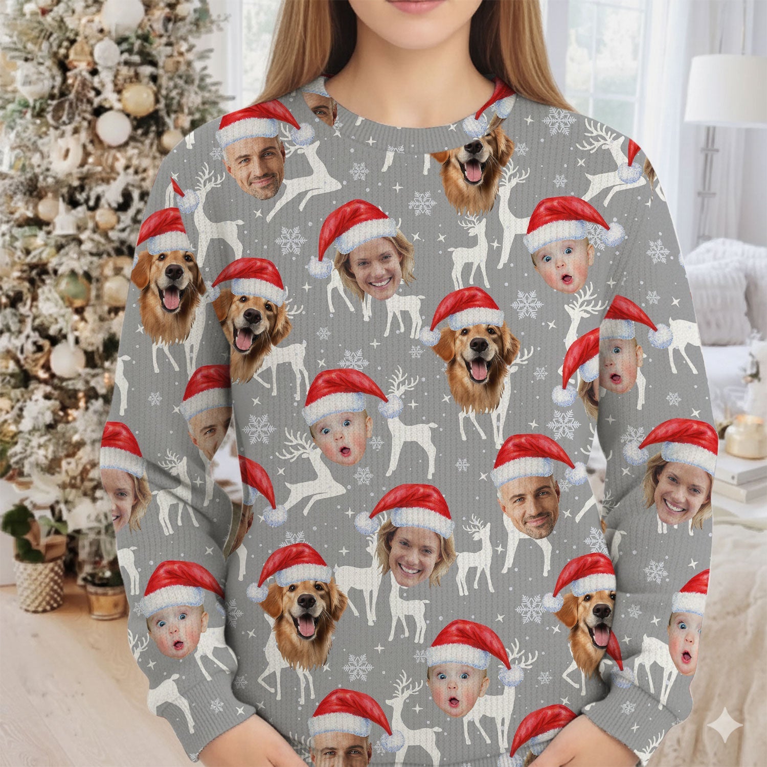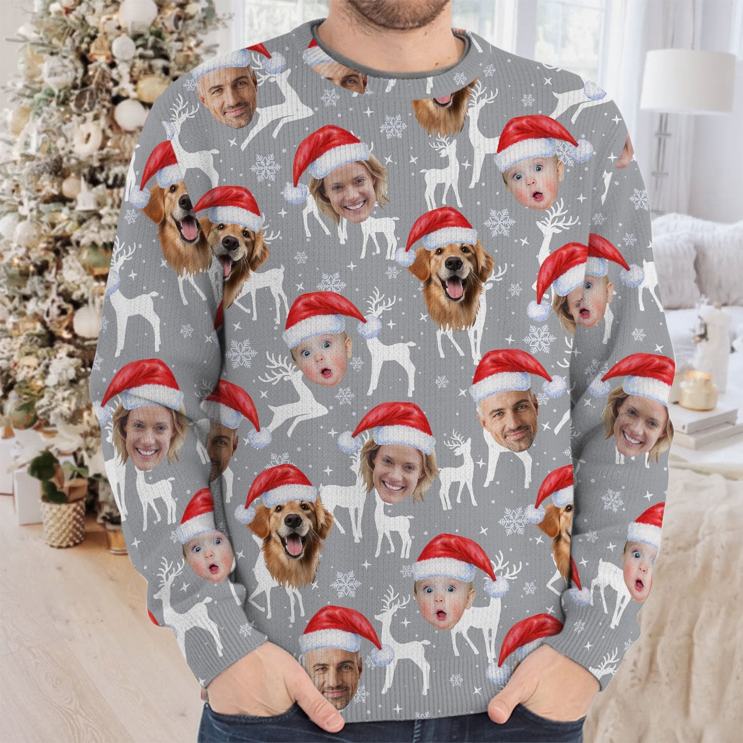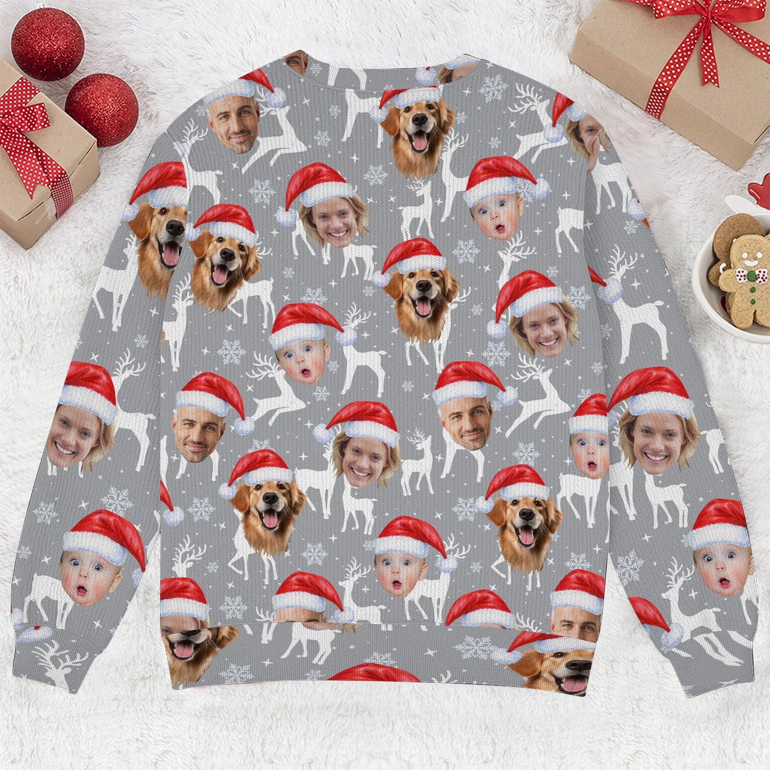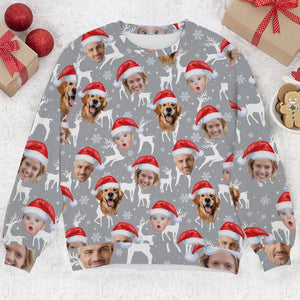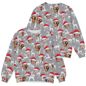 Custom Face Snow Reindeer Grey Golf Ugly Sweater, Christmas Golf Shirt, Golf Sweater, Christmas Golf Gift