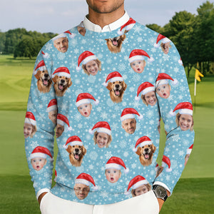 Custom Face Snowflakes Print Ice Blue Golf Ugly Sweater, Christmas Golf Shirt, Golf Sweater, Christmas Golf Gift