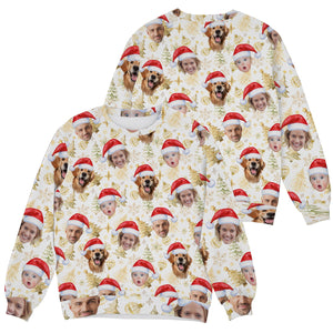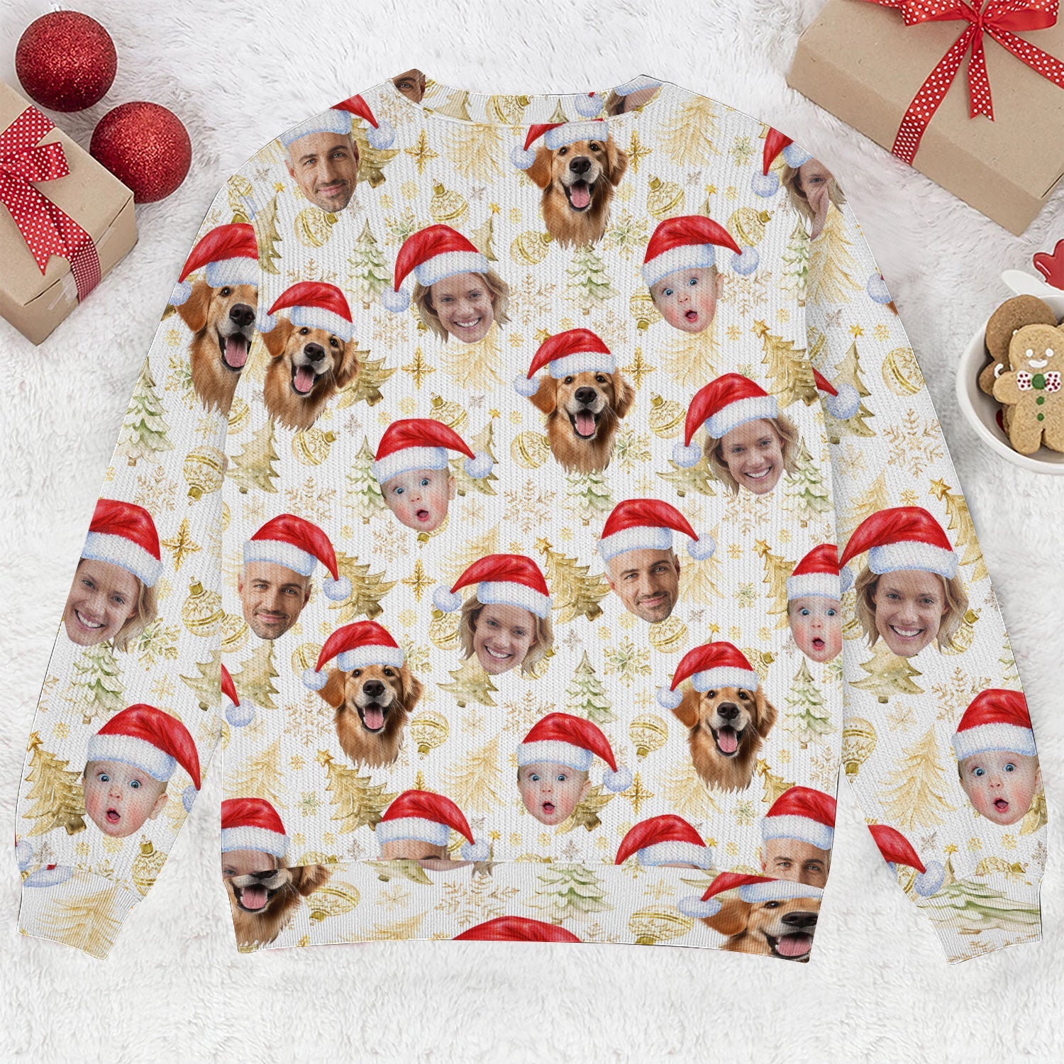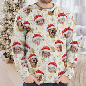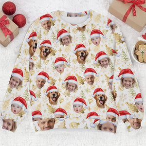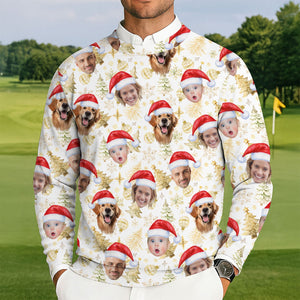 Custom Face Xmas Pattern Golden Print Golf Ugly Sweater, Christmas Golf Shirt, Golf Sweater